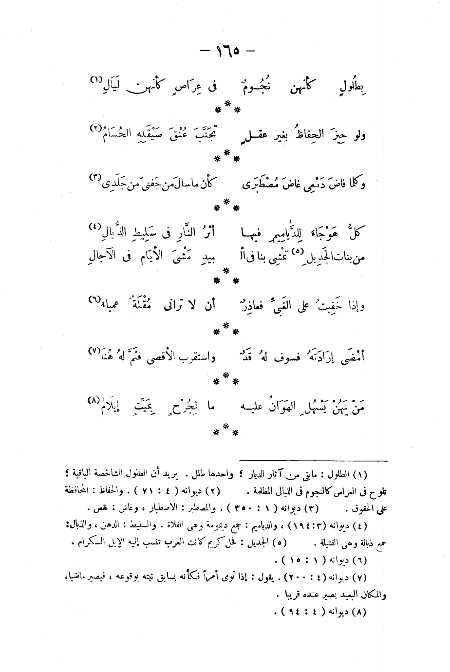بطُلولٍ كأنهن نُجومٌ ... في عِراسٍ كأنهن لَيالِ