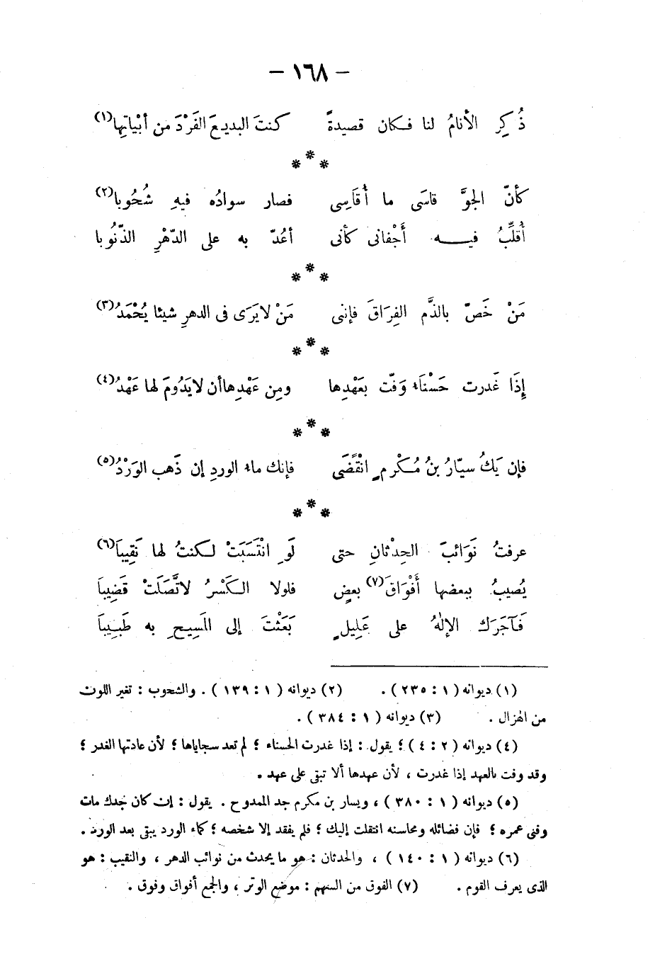 أقلِّبُ فيه أجفاني كأني ... أعدّ به علىالدّهر الذّنوبا