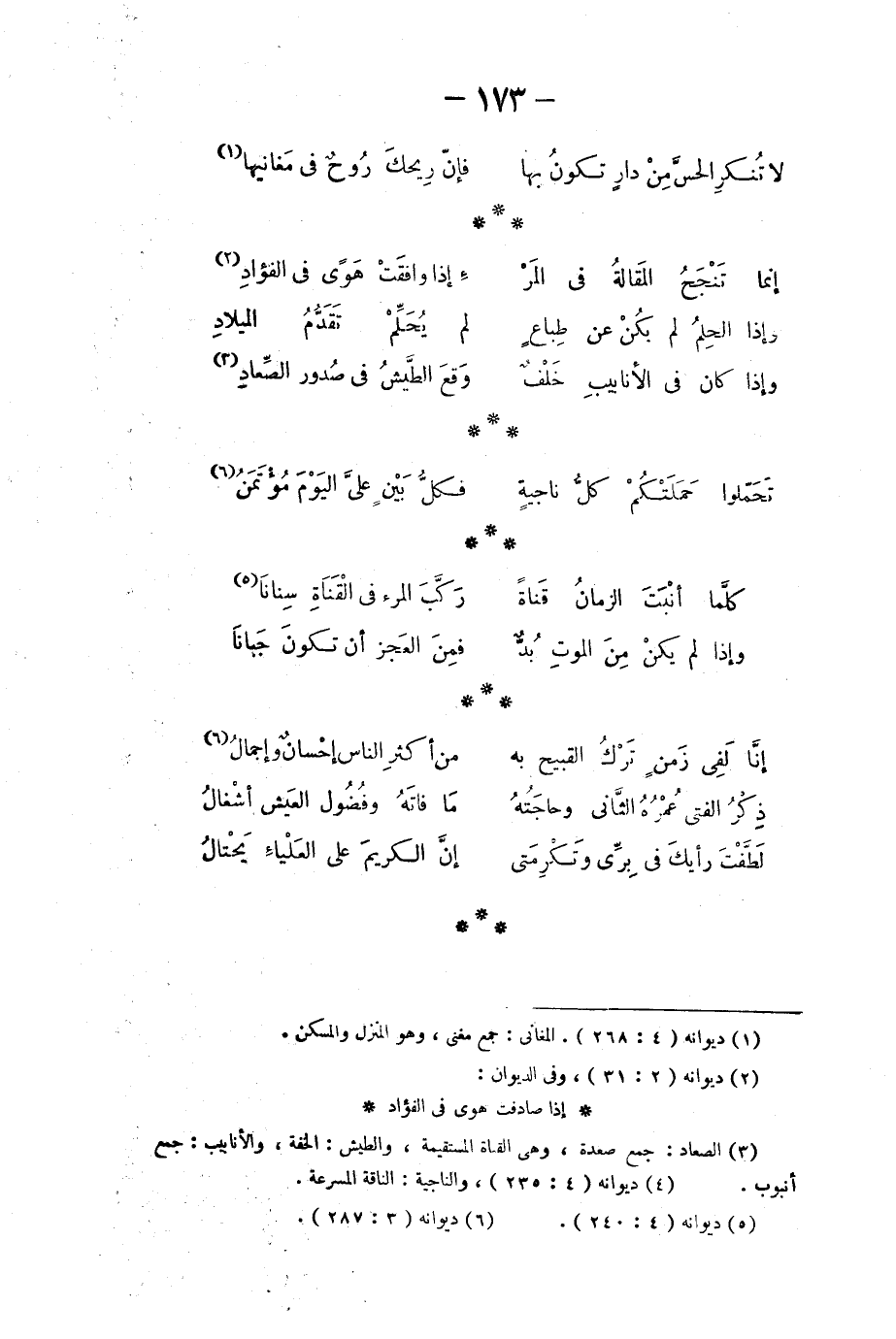 كلّما أنبَتَ الزمانُ قناةً ... ركّب المرء في القناةِ سنانا