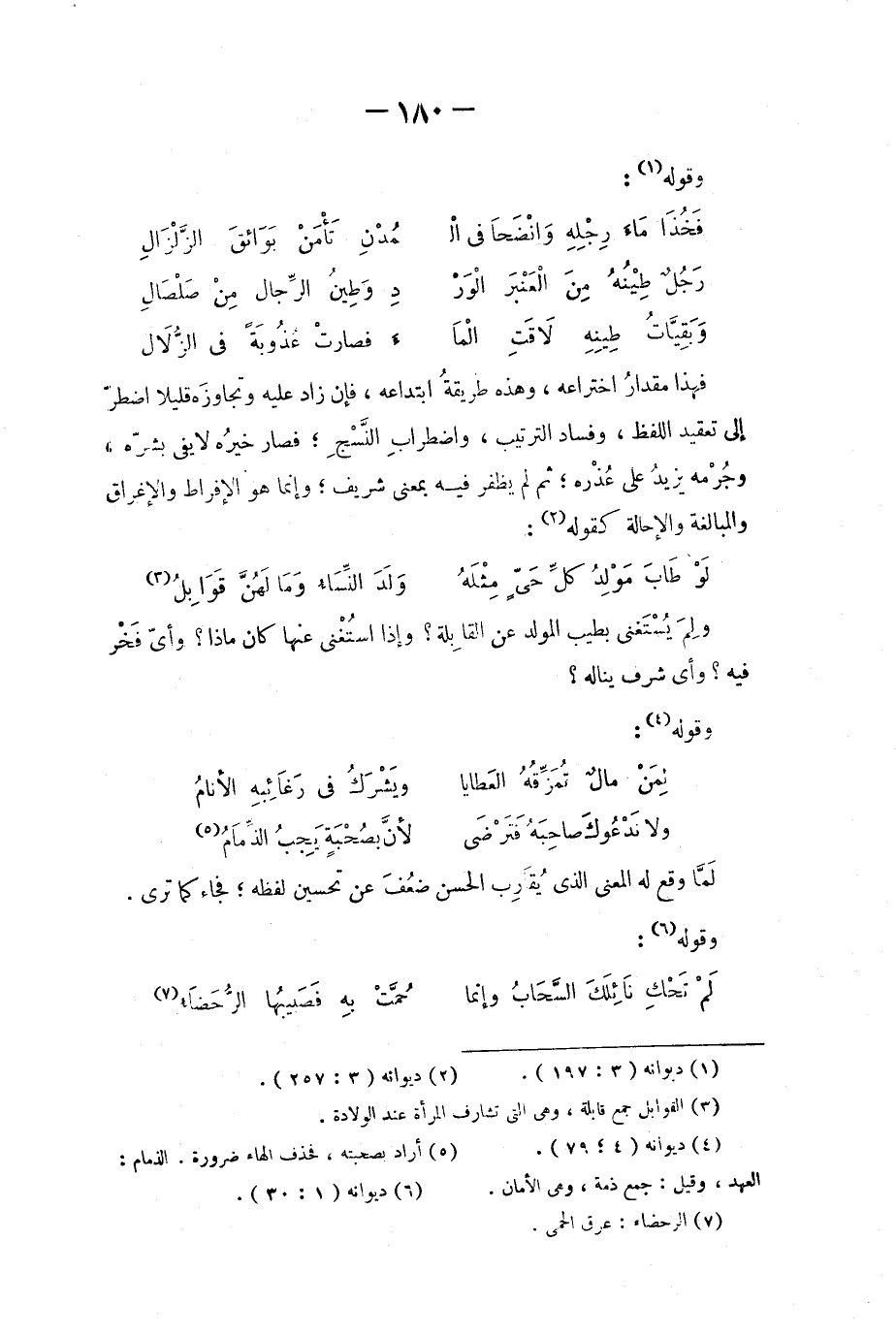 فهذا مقدارُ اختراعه، وهذه طريقةُ ابتداعه، فإن زاد عليه وتجاوزه قليلاً اضطرّ الى تعقيد اللفظ، وفساد الترتيب، واضطراب النّسْج؛ فصار خيرُه لا يفي بشرّه، وجُرْمه يزيدُ على عُذره؛ ثم لم يظفر فيه بمعنى شريف؛ وإنما هو الإفراط والإغراق والمبالغة والإحالة كقوله: