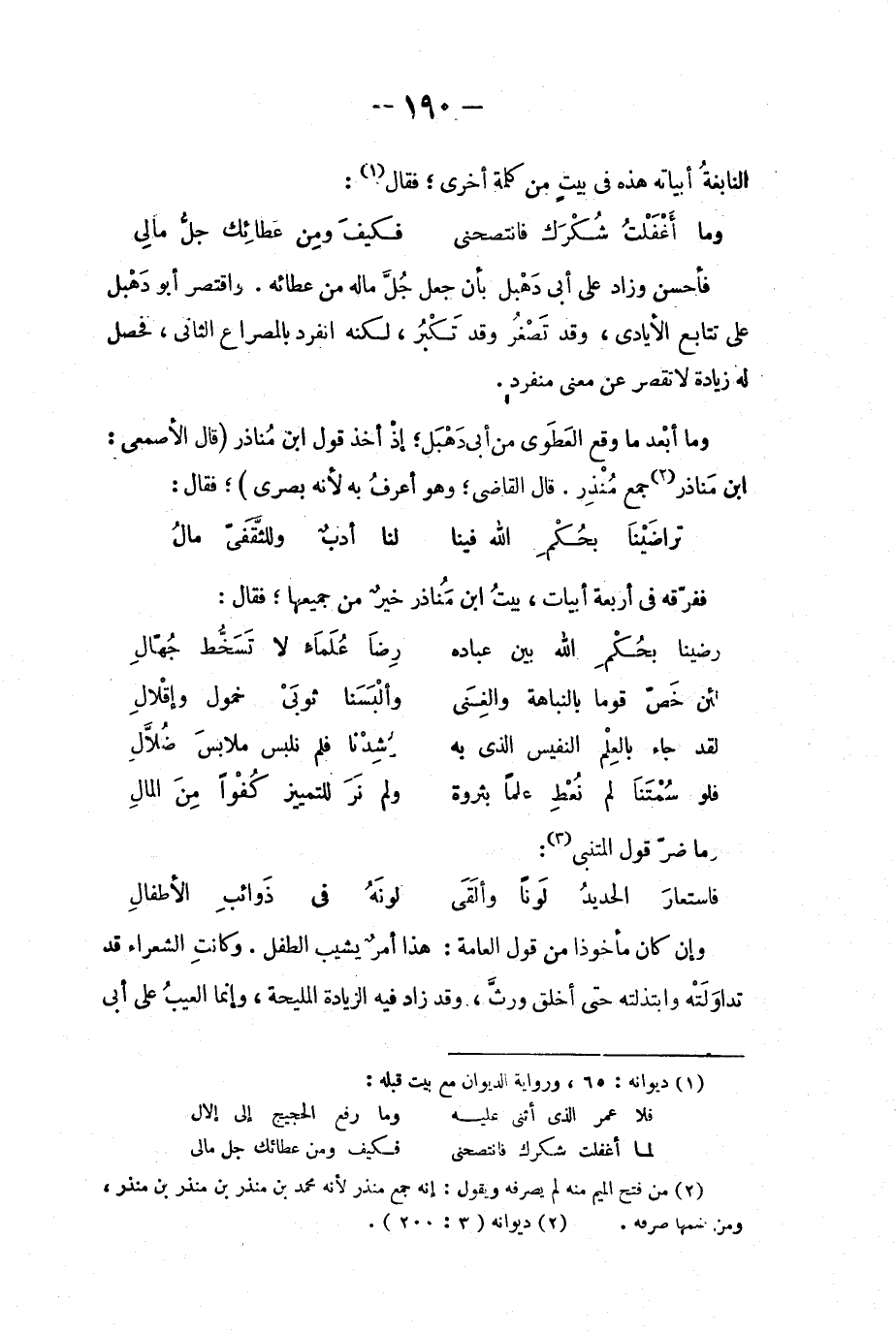 وما أبعد ما وقع العطَوي من أبي دهبَل؛ إذ أخذ قولابن مُناذر قال الأصمعي: ابن مَناذر جمع مُنذر. قال القاضي؛ وهو أعرف به لأنه بصري؛ فقال: