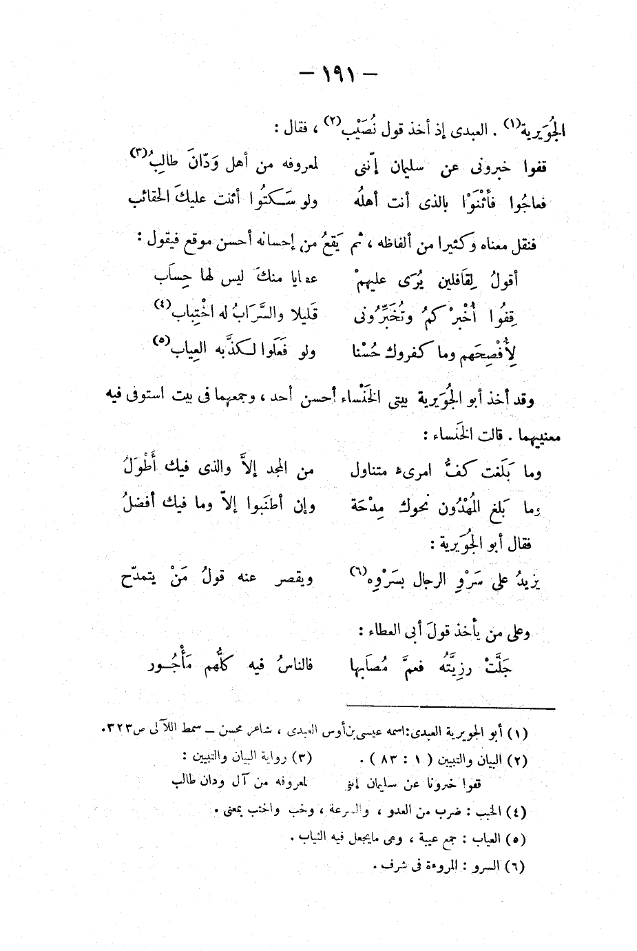 الجويرية. العبدي إذ أخذ قول نُصَيب، فقال: