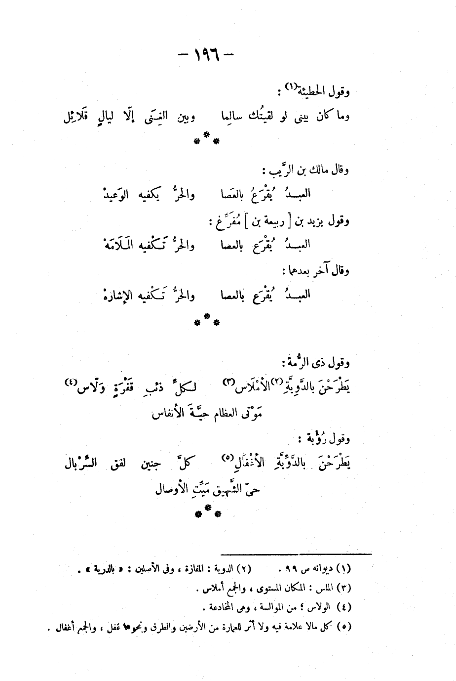 يطرحْن بالدّويّةِ الأمْلاس ... لكلّ ذئب قفرَة ولاّس