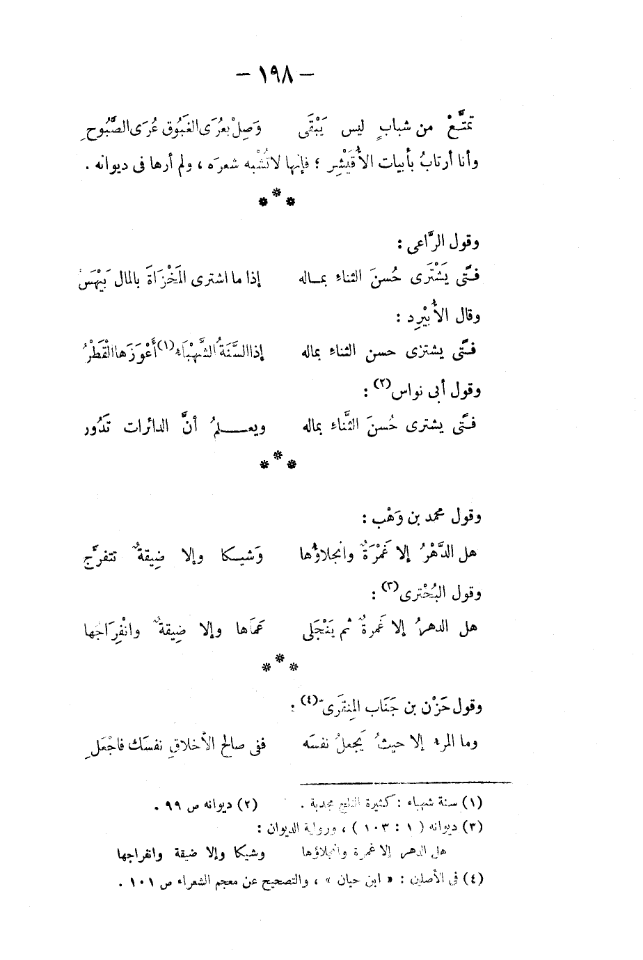 وأنا أرتابُ بأبيات الأقيشر؛ فإنها لا تُشبه شعرَه، ولم أرها في ديوانه.
