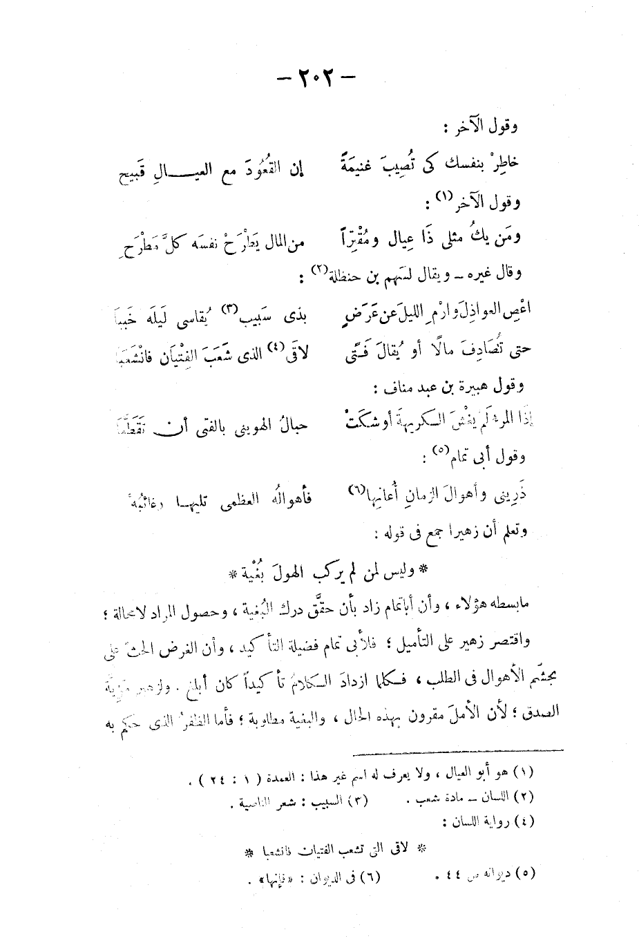 ما بسطه هؤلاء، وأن أبا تمام زاد بأن حقق درك البُغية، وحصول المراد لا محالة؛ واقتصر زهير على التأميل؛ فلأبي تمام فضيلة التأكيد، وأن الغرض الحث على تجشّم الأهوال في الطلب، فكلما ازداد الكلامُ تأكيداً كان أبلغ. ولزهير مزيّة الصدق؛ لأن الأملَ مقرون بهذه الحال، والبغية مطلوبة؛ فأما الظفرُ الذي حكم به