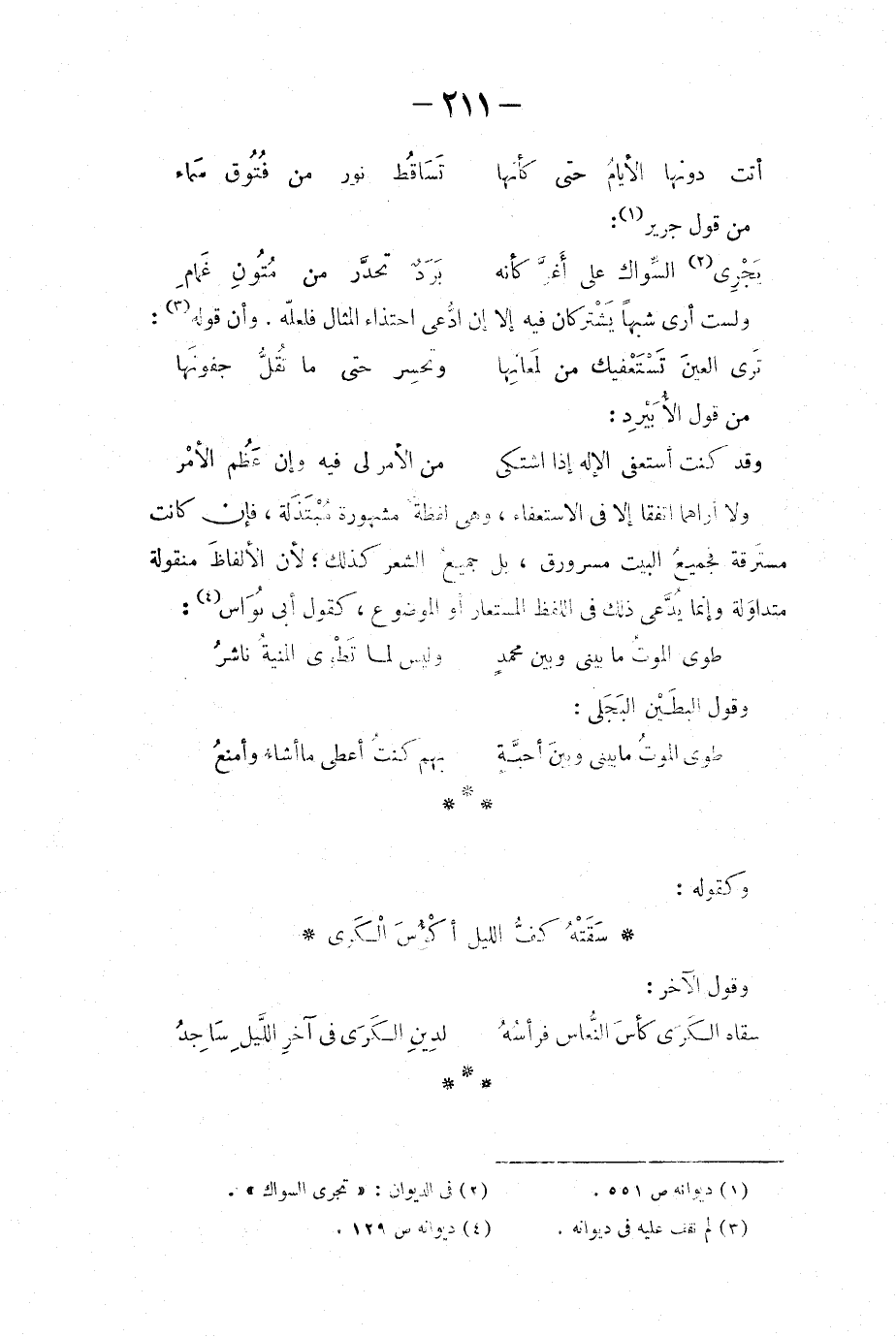 ولا أراهما اتفقا إلا في الاستعفاء، وهي لفظةٌ مشهورة مبتذَلة، فإن كانت مستَرقة فجميعُ البيت مسروق، بل جميع الشعر كذلك؛ لأن الألفاظَ منقولة متداوَلة وإنما يُدَّعى ذلك في اللفظ المستعار أو الموضوع، كقول أبي نواس: