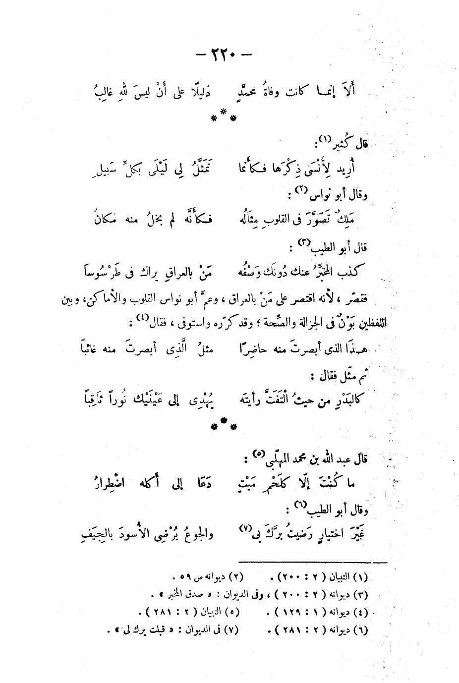 فقصّر، لأنه اقتصر على مَن بالعراق، وعمّ أبو نواس القلوب والأماكن، وبين اللفظين بوْن في الجزالة والصّحة؛ وقد كرّره واستوفى، فقال: