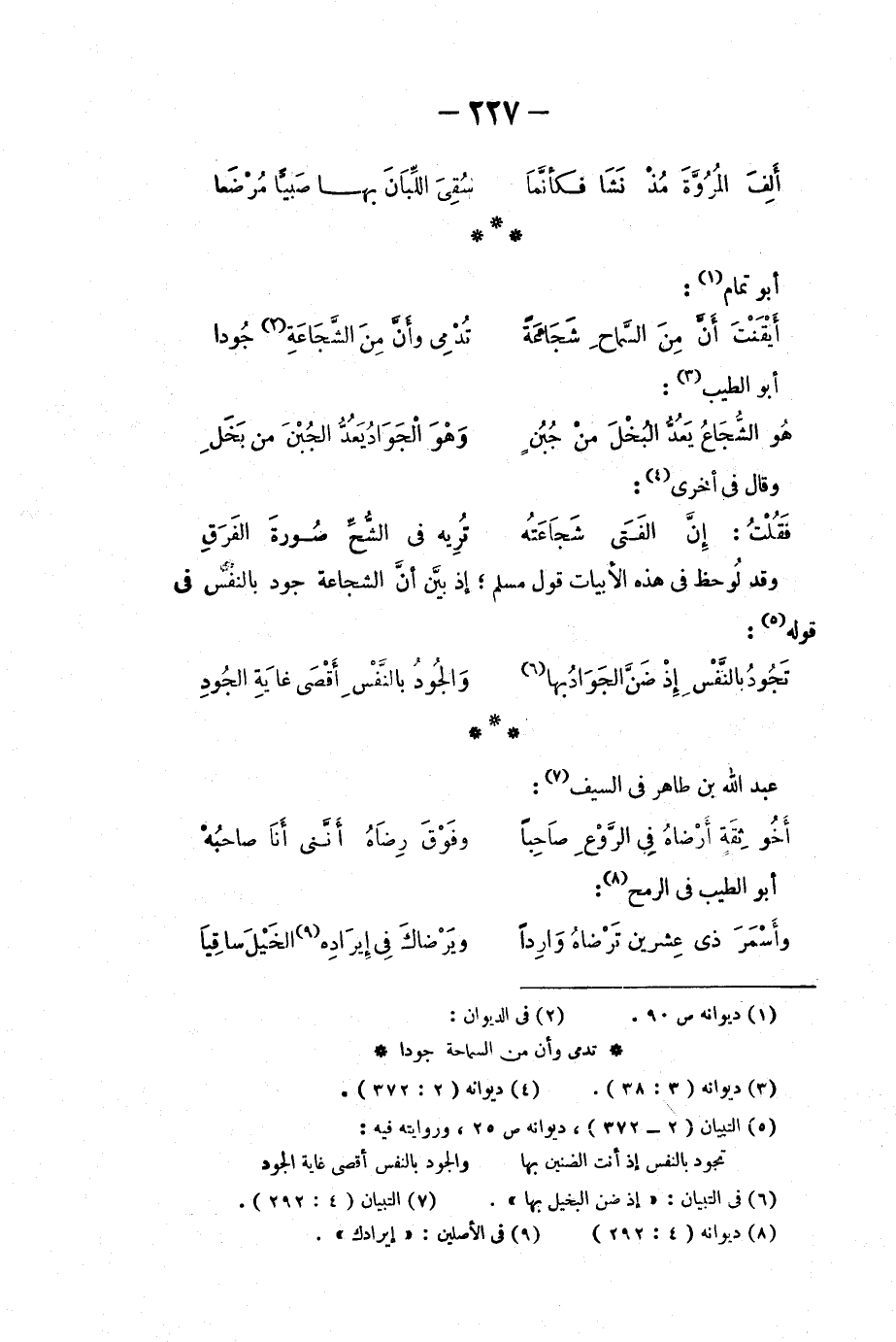 وقد لوحظ في هذه الأبيات قول مسلم؛ إذ بيّن أنّ الشجاعة جود بالنفس في قوله: