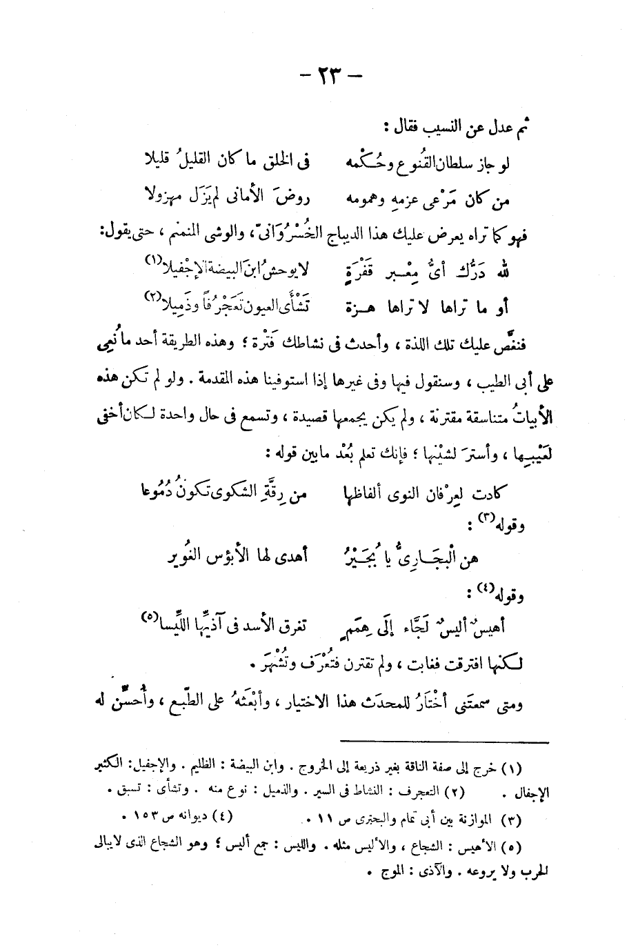 فنغّص عليك تلك اللذة، وأحدث في نشاطك فترة؛ وهذه الطريقة أحد ما نُعِي على أبي الطيّب، وسنقول فيها وفي غيرها إذا استوفينا هذه المقدمة. ولو لم تكن هذه الأبيات متناسقة مقترنة، ولم يكن يجمعها قصيدة، وتسمع في حال واحدة لكان أخفى لعَيبِها، وأسترَ لشيْنها؛ فإنك تعلم بُعد ما بين قوله: