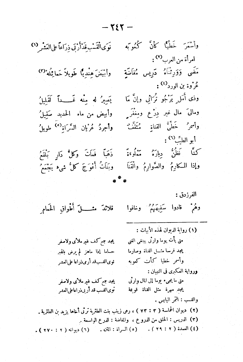 وأسمرَ خطّياً كأنّ كُعوبَه ... نَوى القسْبِ قد أرْبى ذِراعاً على العَشْرِ