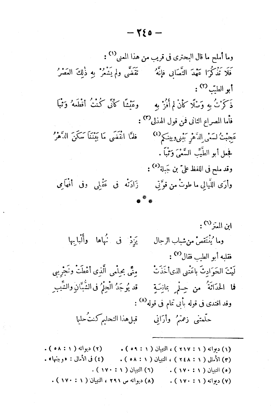 وقد اقتدى في قوله بأبي تمام في قوله: