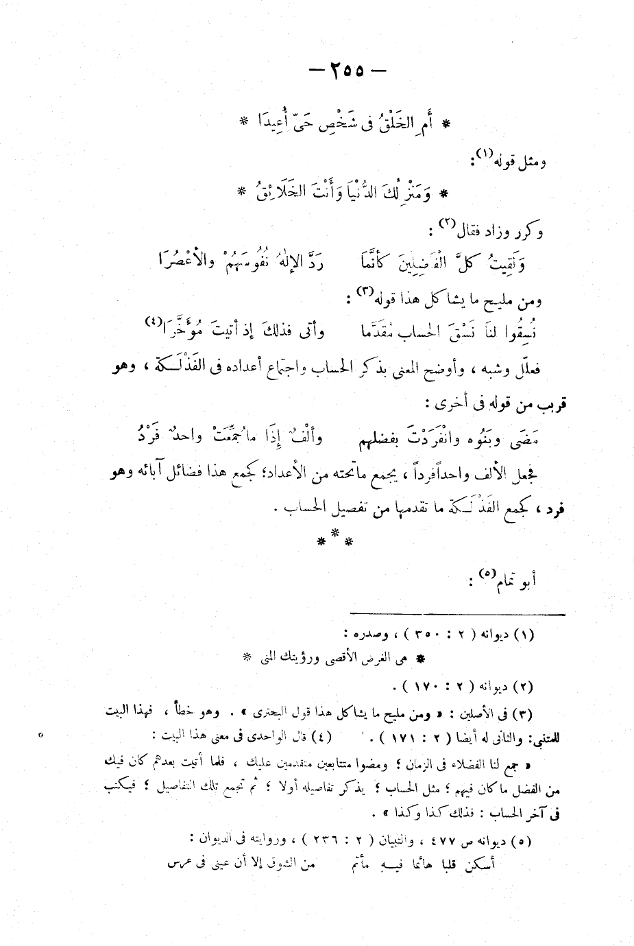 فعلل وشبه، وأوضح المعنى بذكر الحساب واجتماع أعداده في الفذْلكة، وهو قريب من قوله في أخرى:
