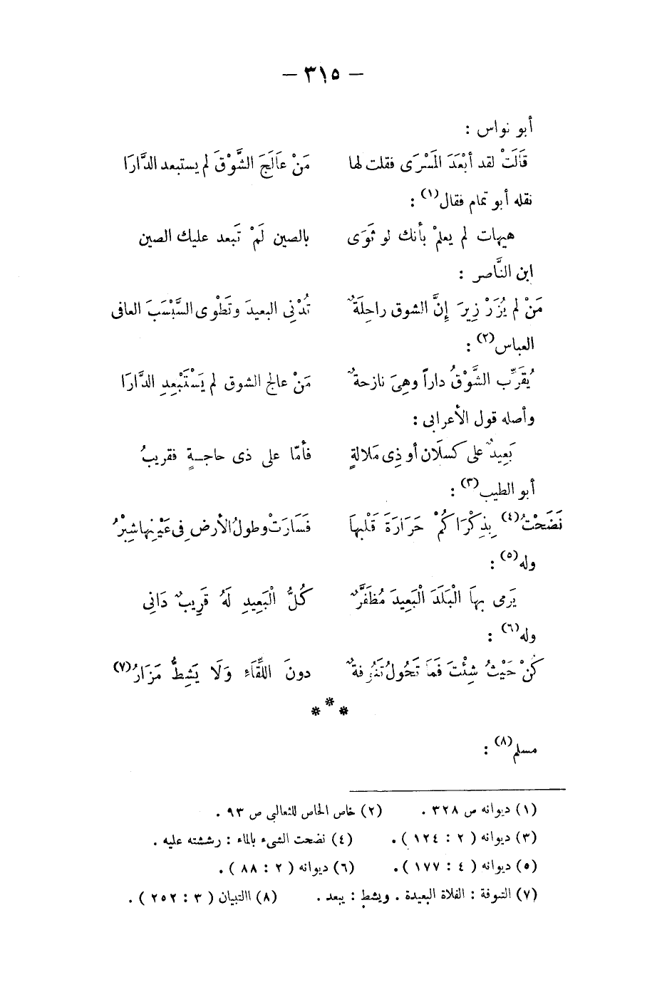 كن حيثُ شئْت فما تحولُ تنوفةٌ ... دون اللقاءِ ولا يشِطّ مزارُ