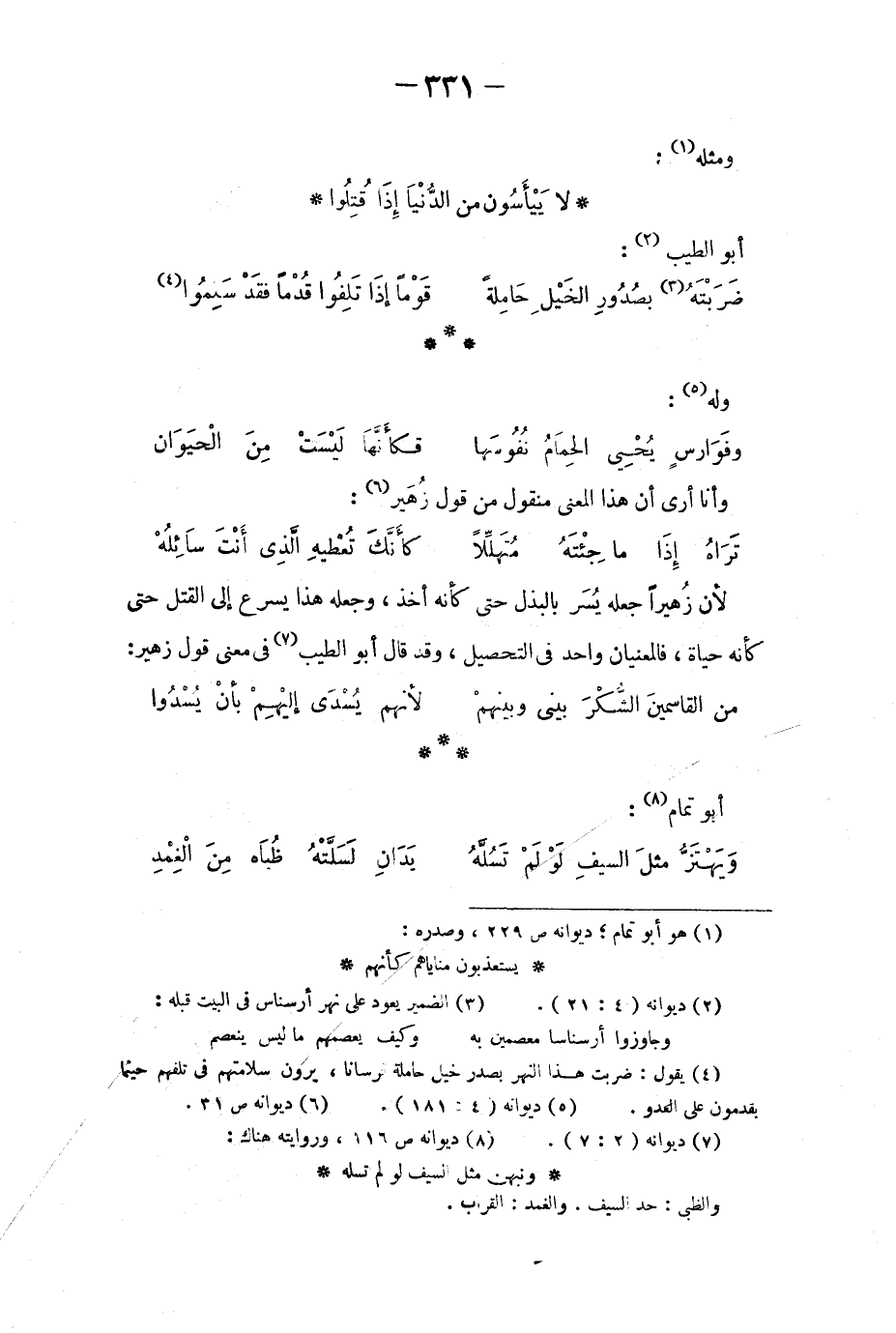 وفوارسٍ يُحيي الحِمامُ نُفوسَها ... فكأنها ليستْ من الحيوان