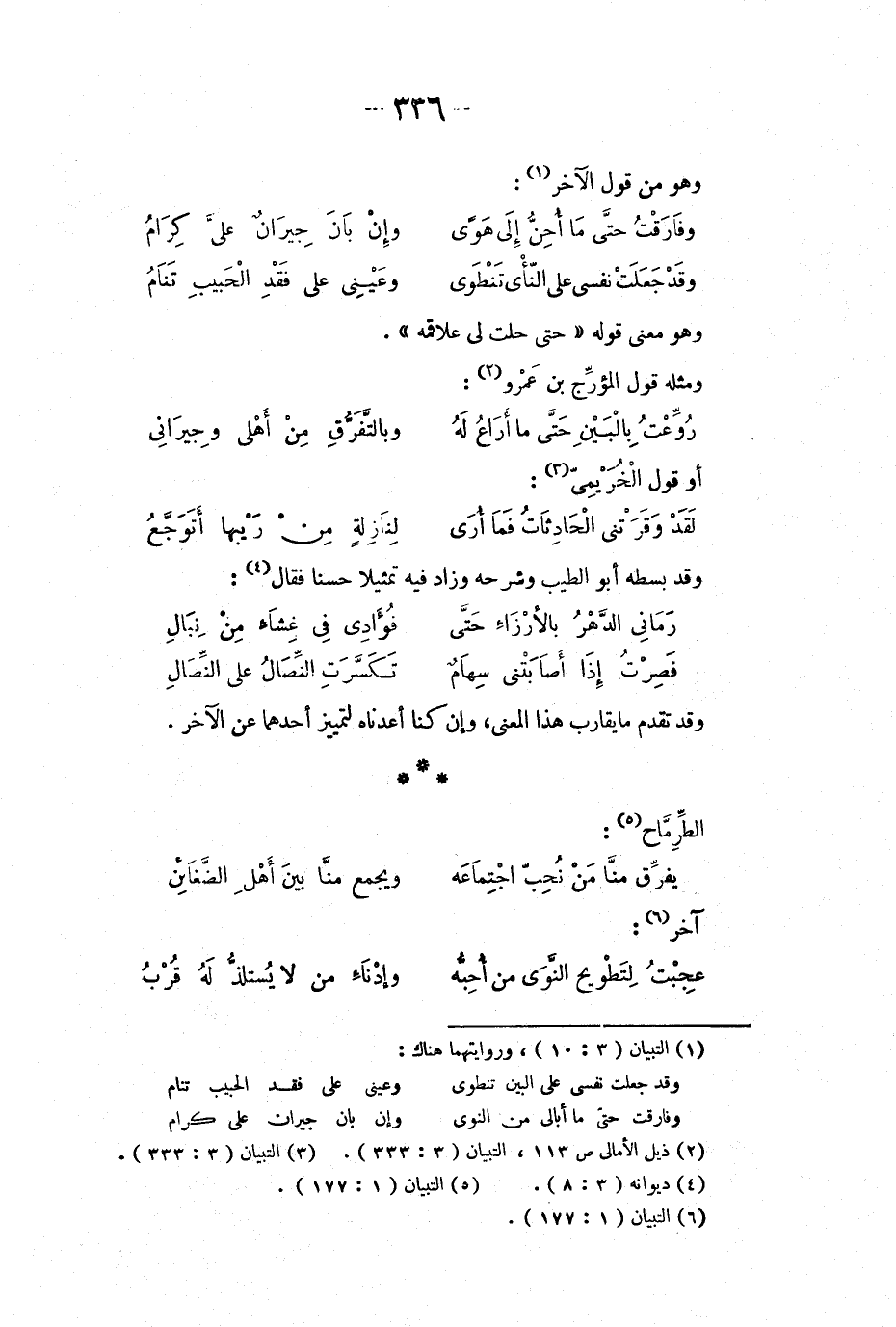 وقد بسطه أبو الطيب وشرحه وزاد فيه تمثيلاً حسناً فقال: