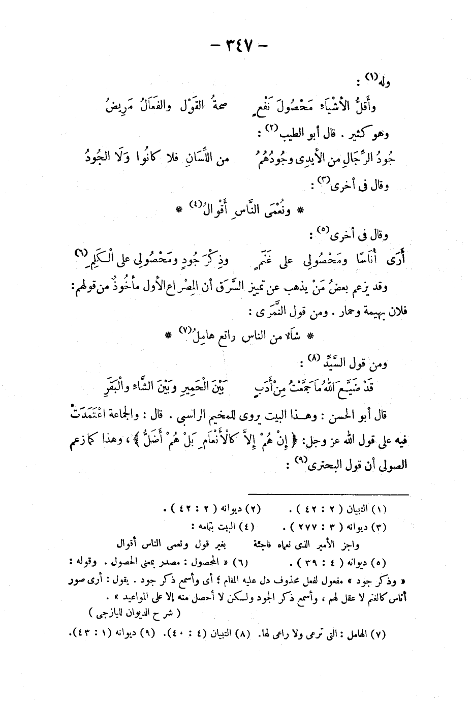 قال أبو الحسن: وهذا البيت يروى للمخيم الراسي. قال: والجماعة اعتمدَتْ فيه على قول الله عز وجل: (إنْ هُمْ إلا كالأنْعامِ بل هُمْ أضلُّ) ، وهذا كما زعم الصولي أن قول البحتري: