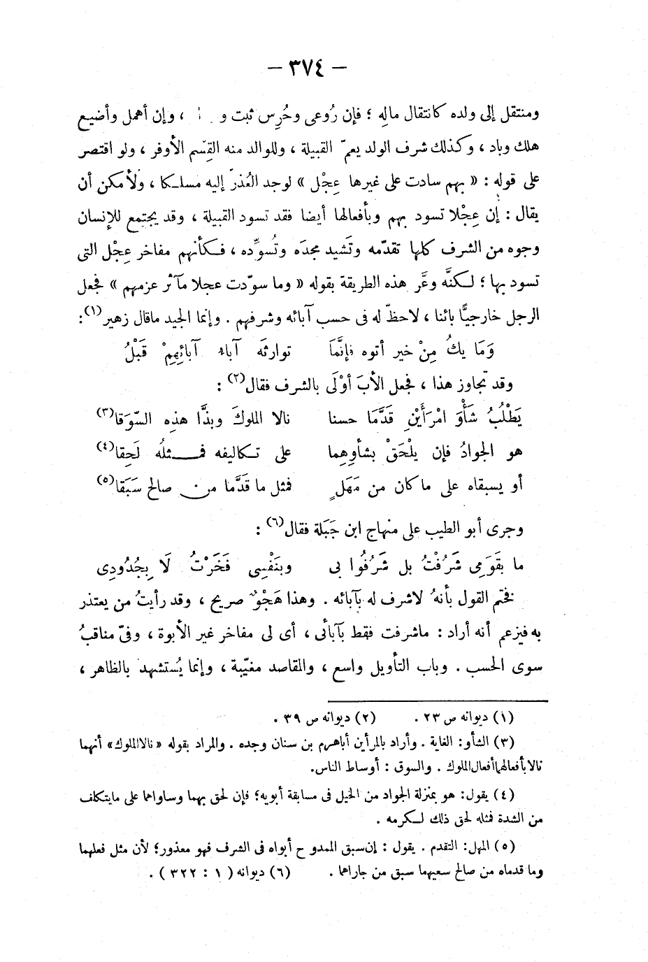 ومنتقل الى ولده كانتقال مالِه؛ فإن رُوعي وحُرِس ثبت وازداد، وإن أهمل وأضيع هلك وباد، وكذلك شرف الولد يعمّ القبيلة، وللوالد منه القِسم الأوفر، ولو اقتصر على قوله: بهم سادت على غيره عِجْل لوجد العُذر إليه مسلكاً، ولأمكن أن يقال: إن عِجْلاً تسود بهم وبأفعالها أيضاً فقد تسود القبيلة، وقد يجتمع للإنسان وجوه من الشرف كلها تقدّمه وتَشيد مجدَه وتسوِّده، فكأنهم مفاخر عِجْل التي تسود بها؛ لكنّه وعّر هذه الطريقة بقوله وما سوّدت عجلاً مآثر عزمهم فجعل الرجل خارجياً بائناً، لا حظّ له في حسب آبائه وشرفهم. وإنما الجيد ما قال زهير:
