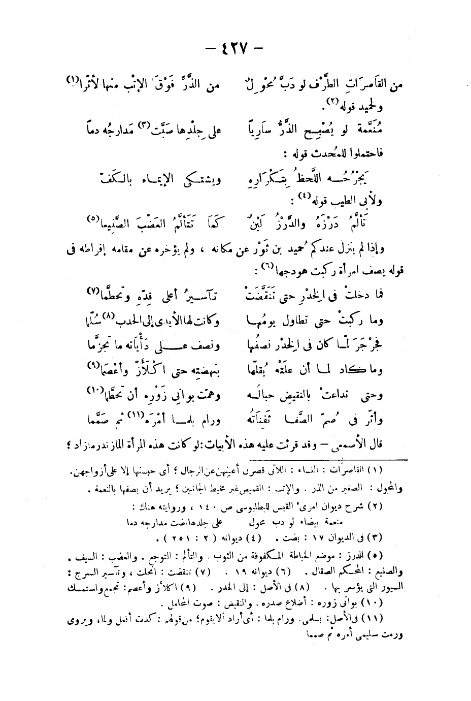 وإذا لم ينزل عندكم حُميد بن ثور عن مكانه، ولم يؤخره عن مقامه إفراطه في قوله يصف امرأة ركبت هودجها: