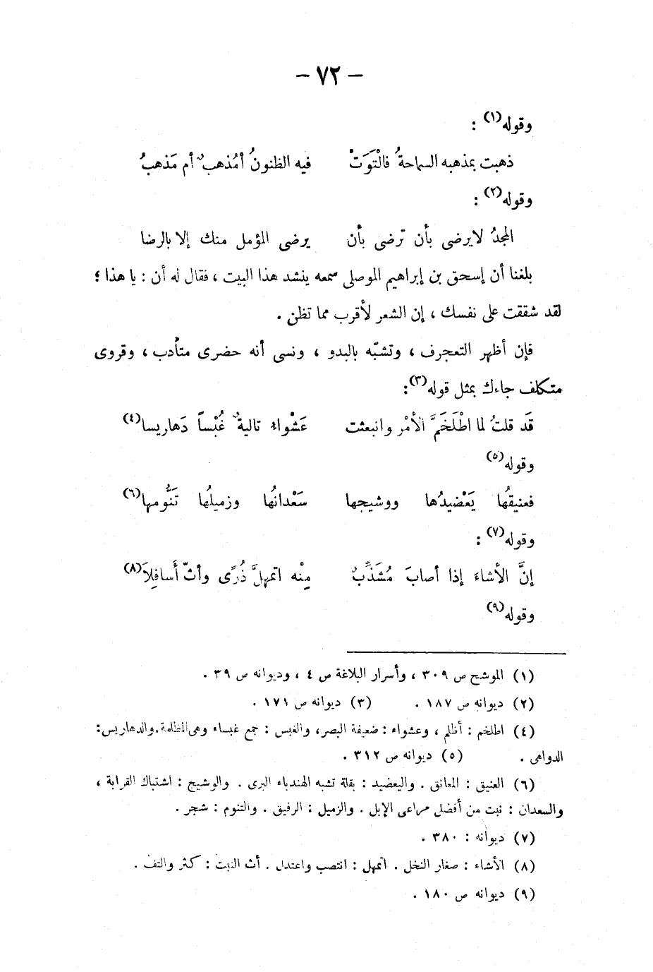 بلغنا أن إسحق بن إبراهيم الموصلي سمعه ينشد هذا البيت، فقال له أن: يا هذا، لقد شققت على نفسك، إن الشعر لأقرب مما تظن.
