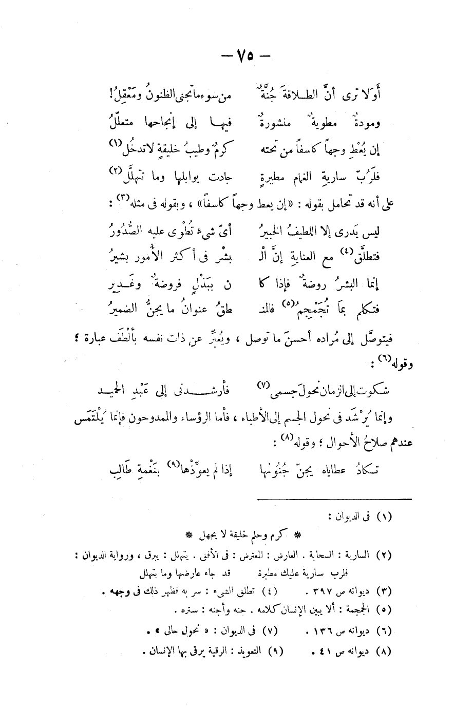 وإنما يُرشَد في نحول الجسم الى الأطباء، فأما الرؤساء والممدوحون فإنما يُلتَمس عندهم صلاحُ الأحوال؛ وقوله: