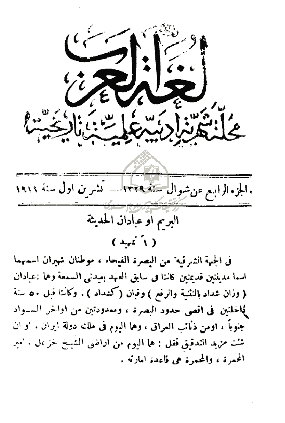 في الجهة الشرقية من البصرة الفيحاء، موطنان شهيران اسمهما اسما مدينتين قديمتين كانتا في سابق العهد بعيدتي السمعة وهما: عبادان (وزان شداد بالتثنية والرفع) وقبان (كشداد). وكانتا قبل 50 سنة داخلتين في أقصى حدود البصرة، ومعدودتين من أواخر السواد جنوباً، أو من ذنائب العراق، وهما اليوم في ملك دولة إيران، أو أن شئت مزيد التدقيق فقل: عما اليوم من أراضي الشيخ خزعل، أمير المحمرة، والمحمرة هي قاعدة إماراته.
