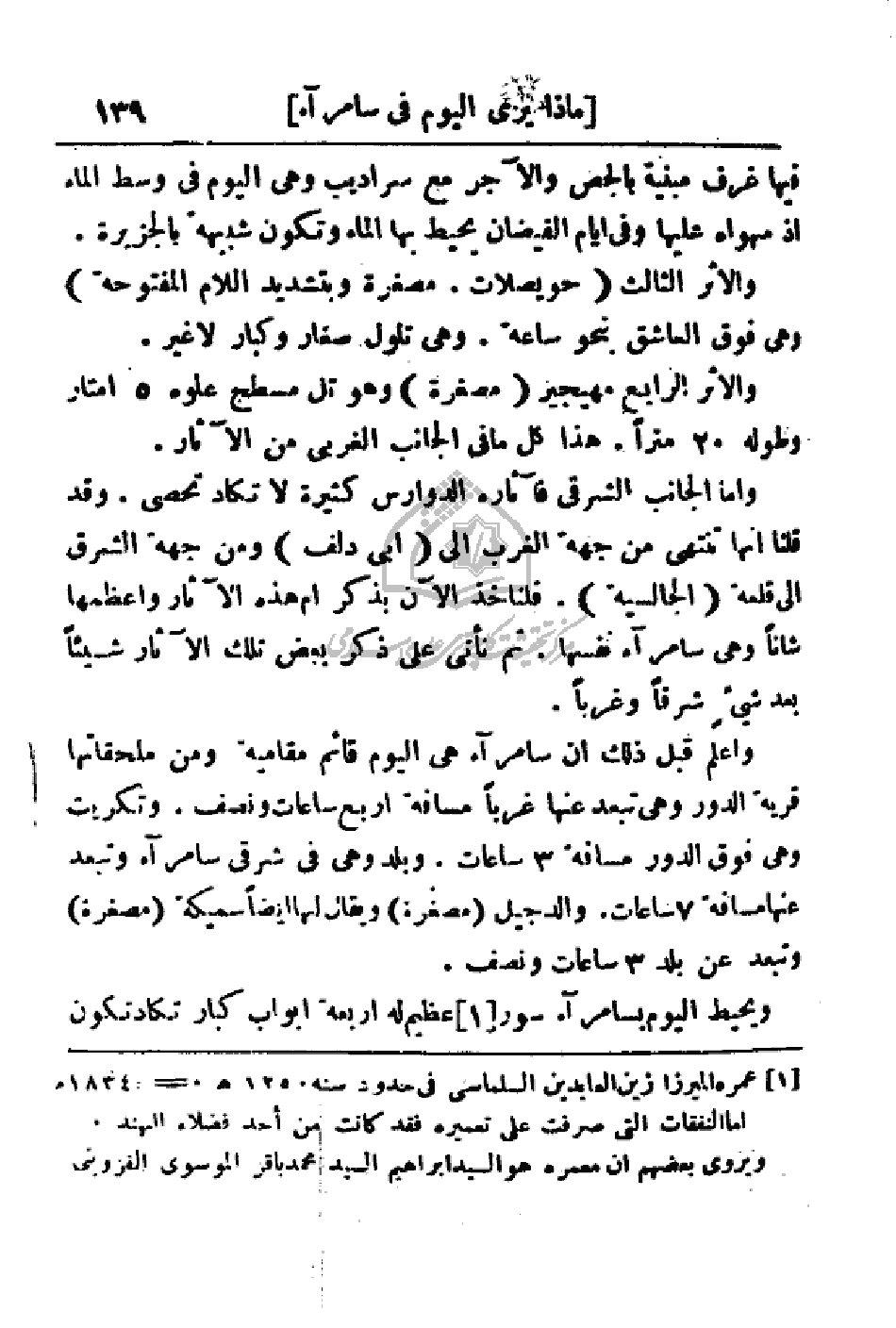 واعلم قبل ذلك أن سامراء هي اليوم قائم مقامية من ملحقاتها قرية الدور وهي تبعد عنها غرباً مسافة أربع ساعات ونصف. وتكريت وهي فوق الدور مسافة 3 ساعات. وبلد وهي في شرقي سامراء وتبعد عنها مسافة 7 ساعات. والدجيل (مصغرة) ويقال لها أيضاً سميكة (مصغرة) وتبعد عن بلد 3 ساعات ونصف.