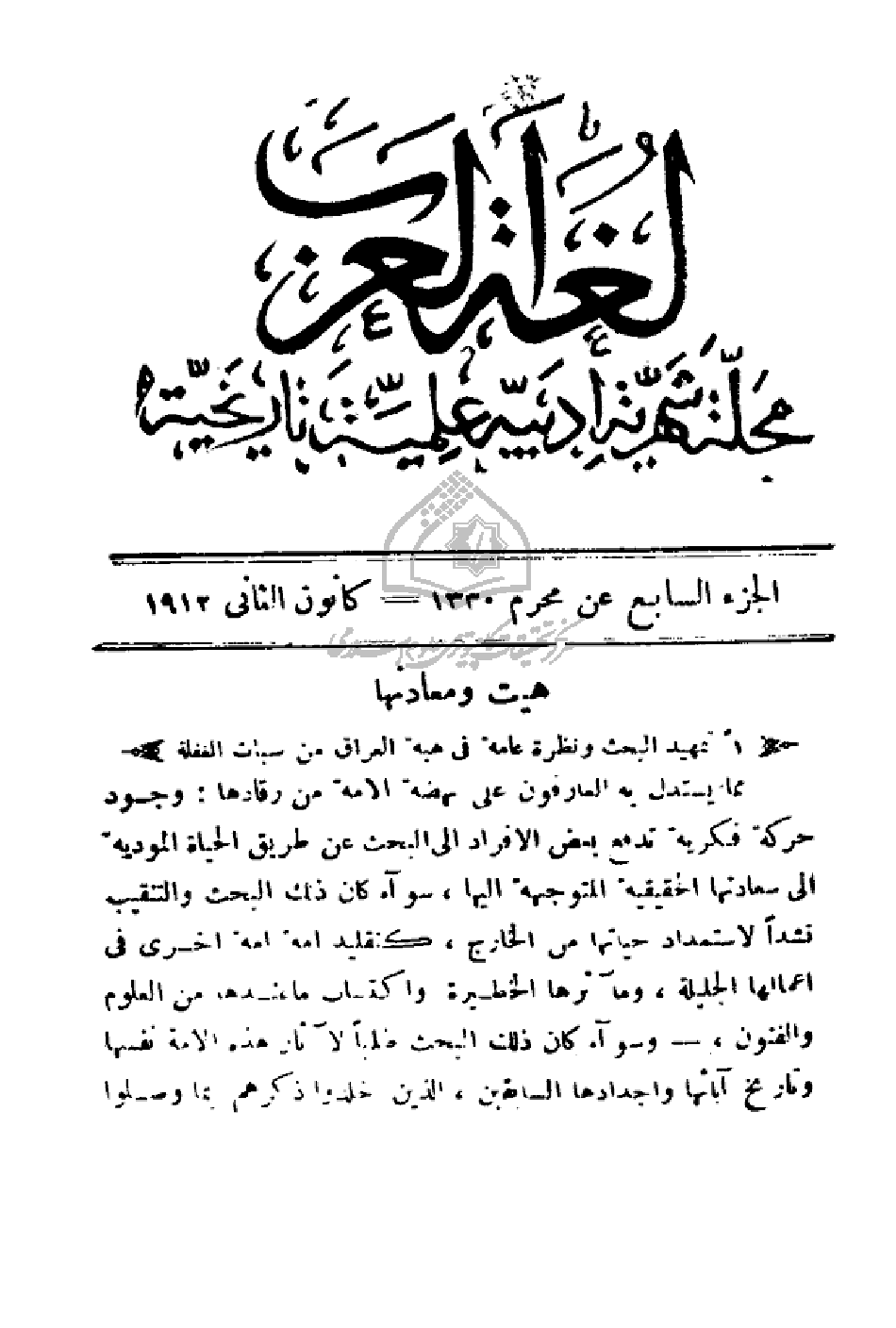العدد 7 - بتاريخ: 01 - 01 - 1912