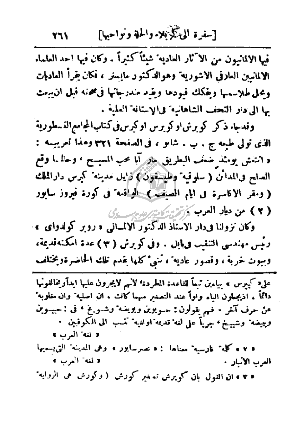 كثيراً. وكان فيها أحد العلماء الألمانيين العارفي الآشورية وهو الدكتور مايستر، فكان يقرأ العاديات ويحل طلاسمها ويفكك قيودها ويقيد مندرجاتها في صحفه قبل أن يبعث بها إلى دار التحف الشاهانية في الأستانة العلية.