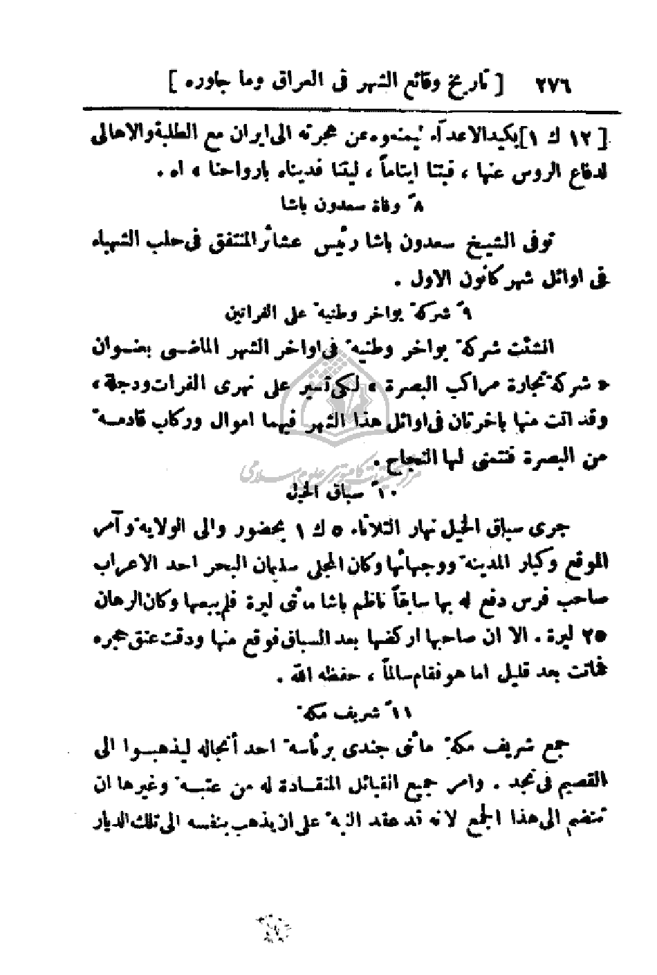 أنشئت شركة بواخر وطنية في أواخر الشهر الماضي بعنوان (شركة تجارة مراكب البصرة) لكي تسير على نهري الفرات ودجلة، وقد أتت منها باخرتان في أوائل هذا الشهر فيهما أموال وركاب قادمة من البصرة فنتمنى لها النجاح.