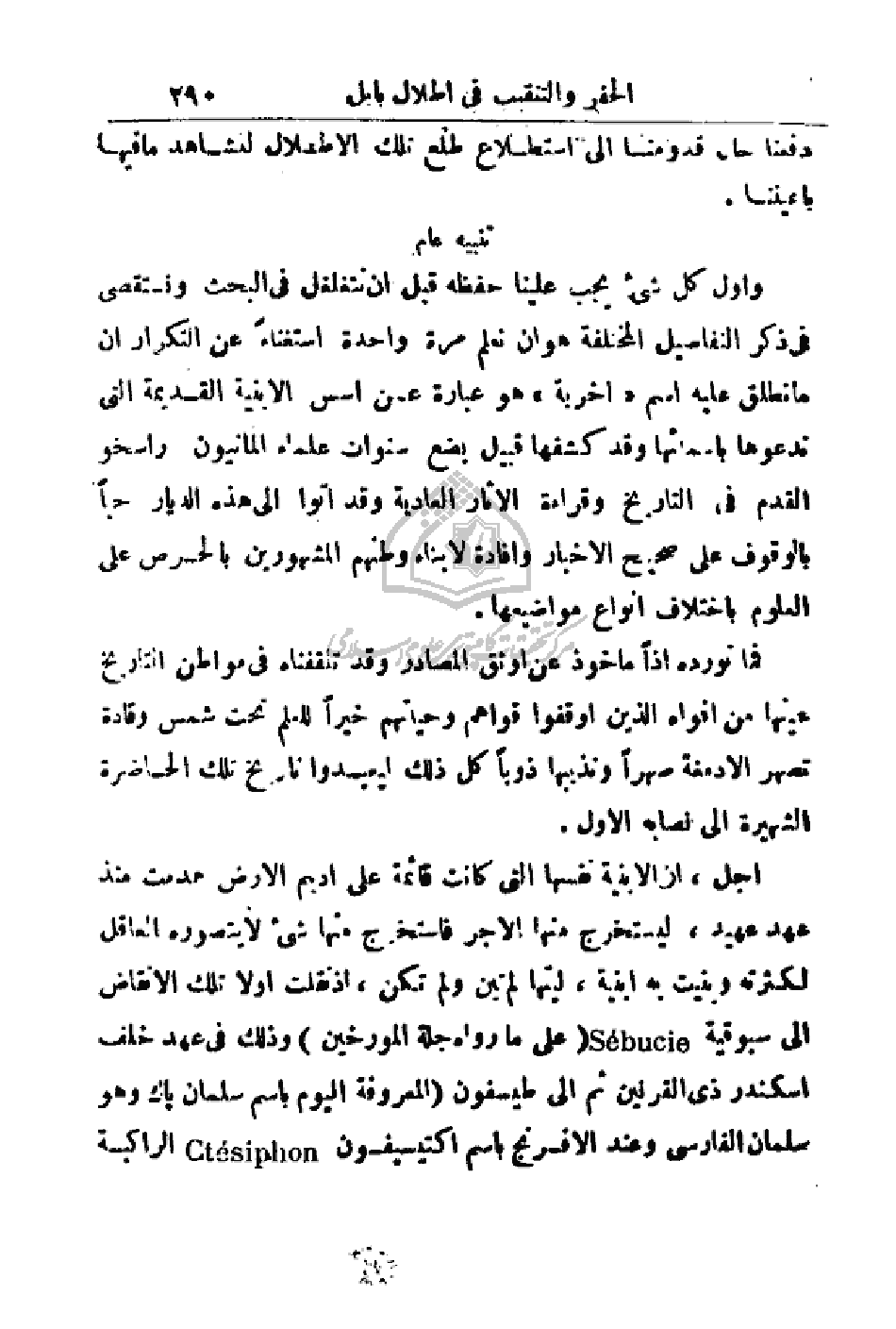 وأول كل شيء يجب علينا حفظه قبل أن نتغلغل في البحث ونستقصي في ذكر التفاصيل المختلفة هوان نعلم مرة واحدة استغناءً عن التكرار أن ما تطلق عليه اسم (اخرية) هو عبارة عن أسس الأبنية القديمة التي ندعوها بأسمائها وقد كشفها قبيل بضع سنوات علماء المانيون راسخو القدم في التاريخ وقراءة الآثار العادية وقد أتوا إلى هذه الديار حباً بالوقوف على صحيح الأخبار وإفادة لأبناء وطنهم المشهورين بالحرص على العلوم باختلاف أنواع مواضيعها.