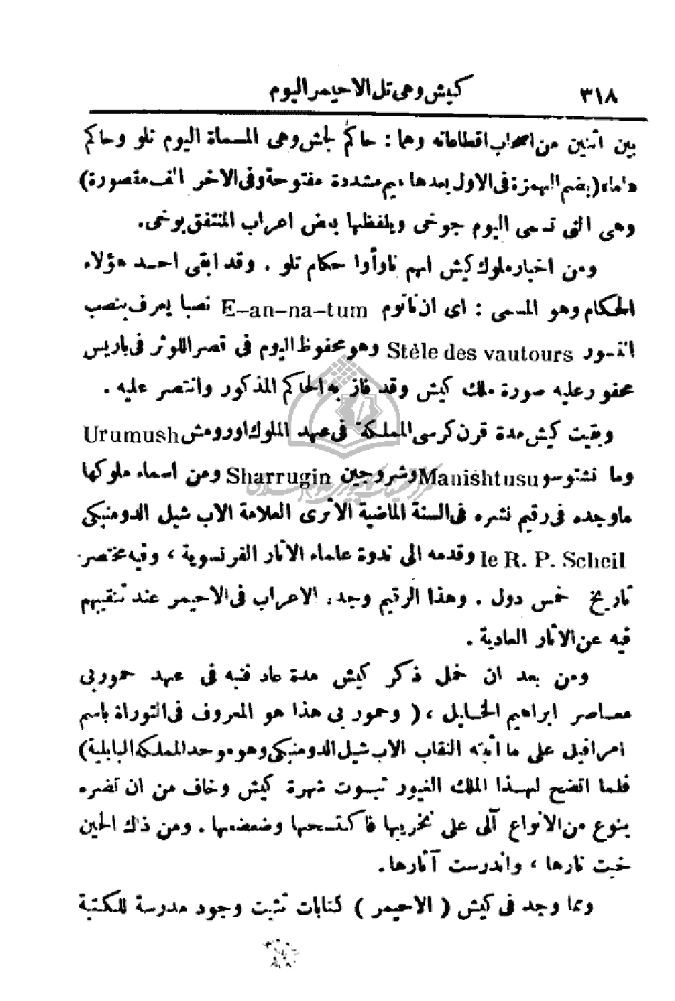 وبقيت كيش مدة قرن كرسي المملكة في عهد الملوك اورومش ومانشتوسو ووشروجين ومن أسماء ملوكها ما وجد في رقيم نشره في السنة الماضية الأثري العلامة الأب شيل الدومنيكي وقدمه إلى ندوة علماء الآثار الفرنسوية، وفيه مختصر تاريخ خمس دول. وهذا الرقيم وجده الأعراب في الاحيمر عند تنقيبهم فيه عن الآثار العادية.