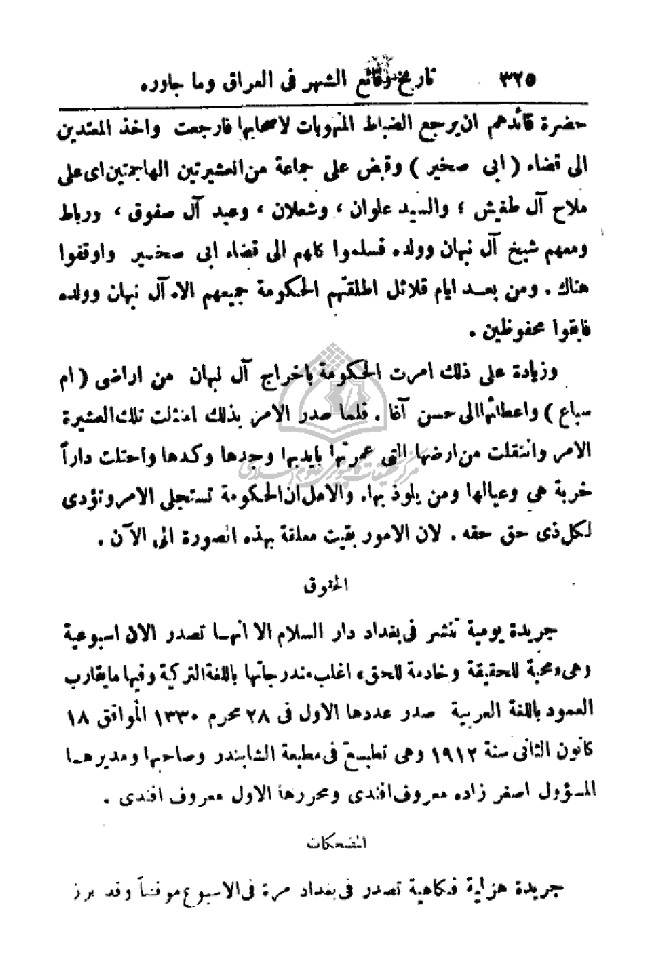 جريدة يومية تنشر في دار السلام إلا إنها تصدر الآن أسبوعية وهي (محبة للحقيقة وخادمة للحق) اغلب مندرجاتها باللغة التركية وفيها ما يقارب العمود باللغة العربية صدر عددها الأول في 28 محرم 13330 الموافق 18 كانون الثاني سنة 1912 وهي تطبع في مطبعة الشابندر وصاحبها ومديرها المسؤول اصغر زاده معروف أفندي ومحررها معروف أفندي