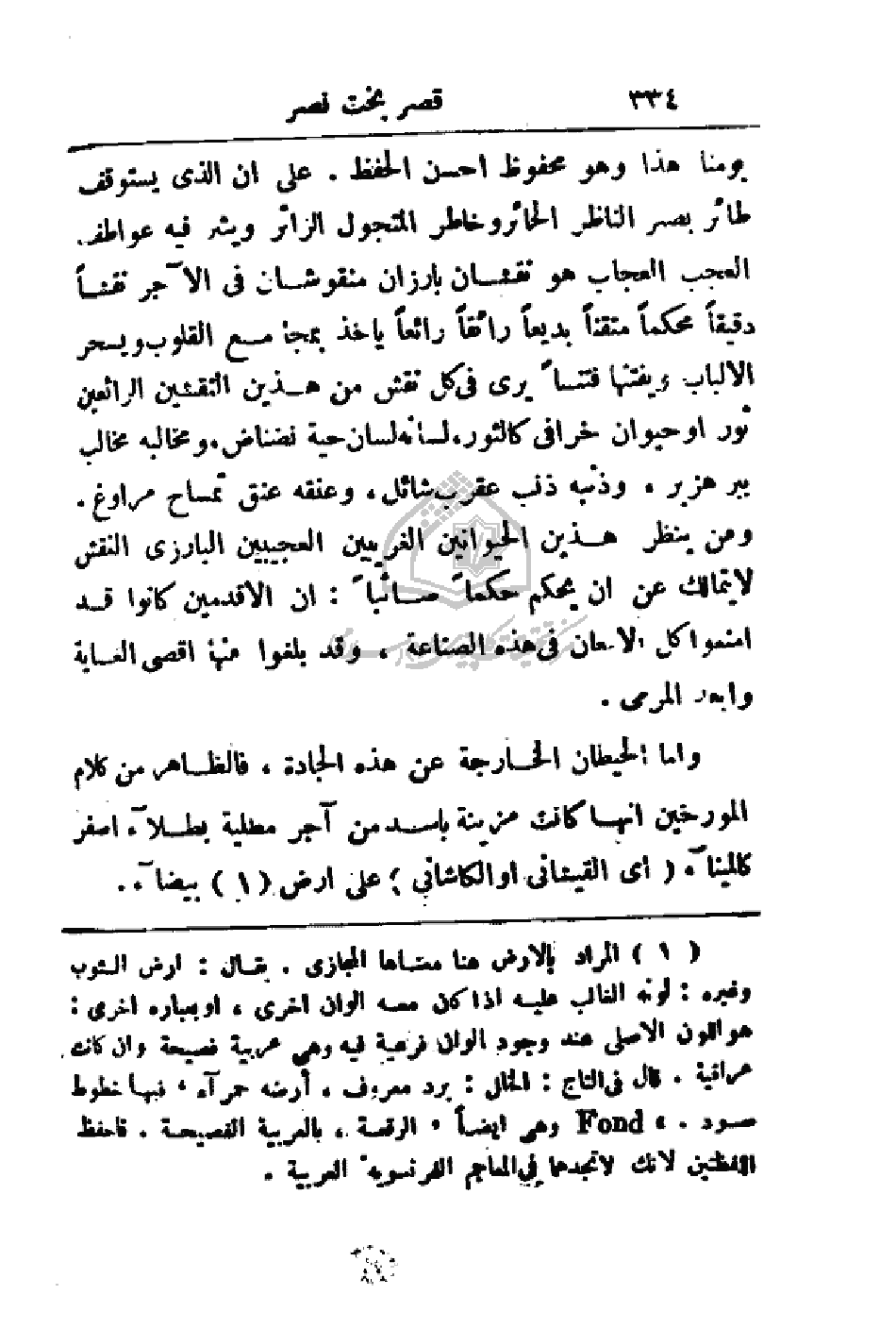 ذنب عقرب شائل، وعنقه عنق تمساح مراوغ. ومن ينظر هذين الحيوانين الغريبين العجيبين البارزي النقش لا يتمالك عن أن يحكم حكماً صائباً: أن الأقدمين كانوا قد أمعنوا كل الإمعان في هذه الصناعة، وقد بلغوا منها أقصى الغاية وابعد المرمى.