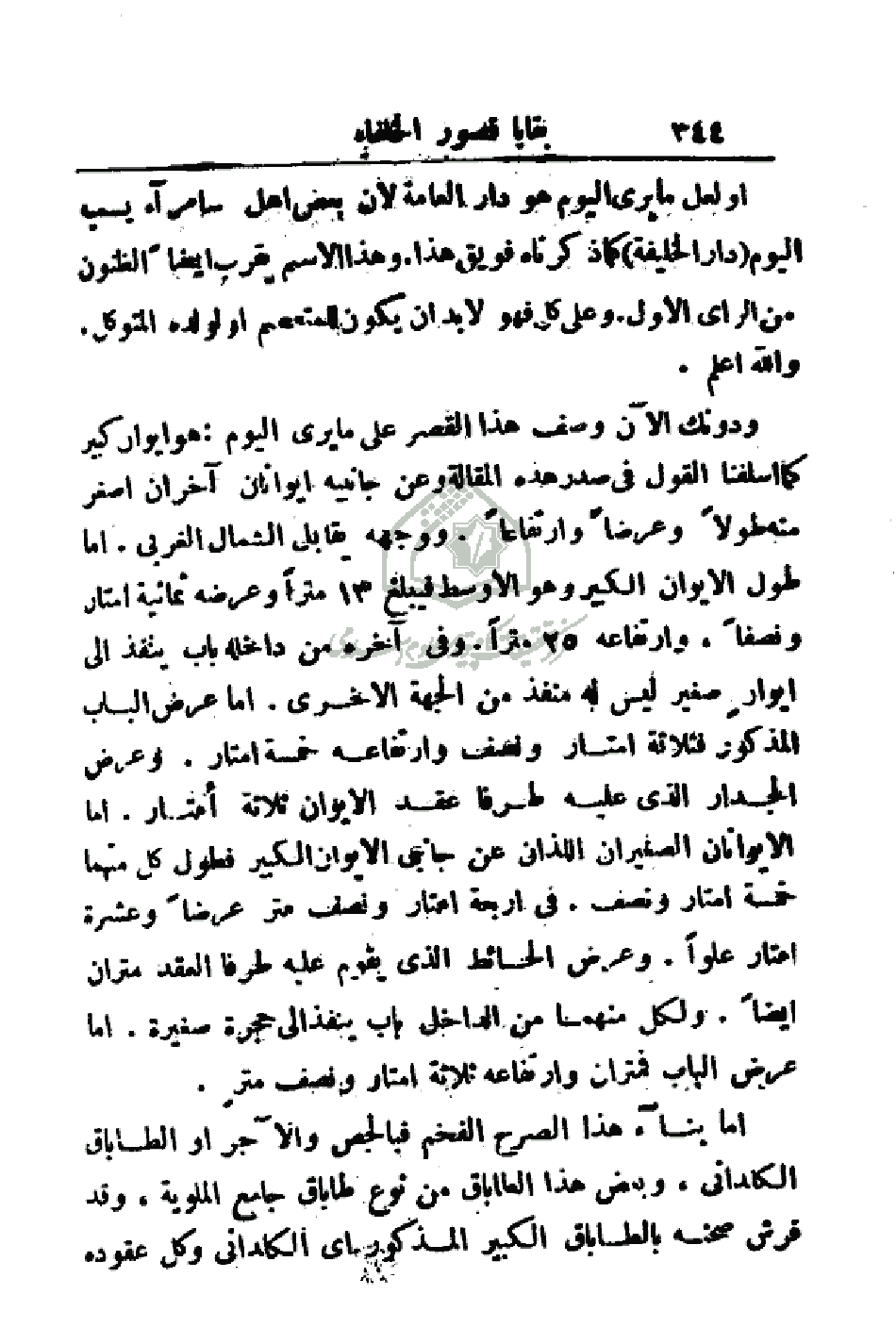 أو لعل ما يرى اليوم هو دار العامة لان بعض أهل سامراء يسميه اليوم (دار الخليفة) كما ذكرناه فويق هذا. وهذا الاسم يقرب أيضاً الظنون من الرأي الأول. وعلى كل فهو لابد أن يكون للمعتصم أو لولده المتوكل والله اعلم.