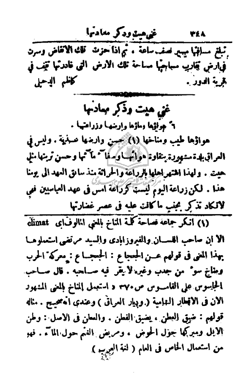 هوائها طيب ومناخها حسن وأرضها عذبة. وليس في العراق بلدة مشهورة بنقاوة هوائها وصفاء مائها وحسن تربتها مثل هيت. ولهذا اشتهر أهلها بالزراعة والحراثة منذ سابق العهد إلى يومنا هذا. لكن زراعة اليوم ليست كزراعة أمس في عهد العباسيين فهي لا تكاد تذكر بجنب ما كانت عليه في عصر غضارتها.