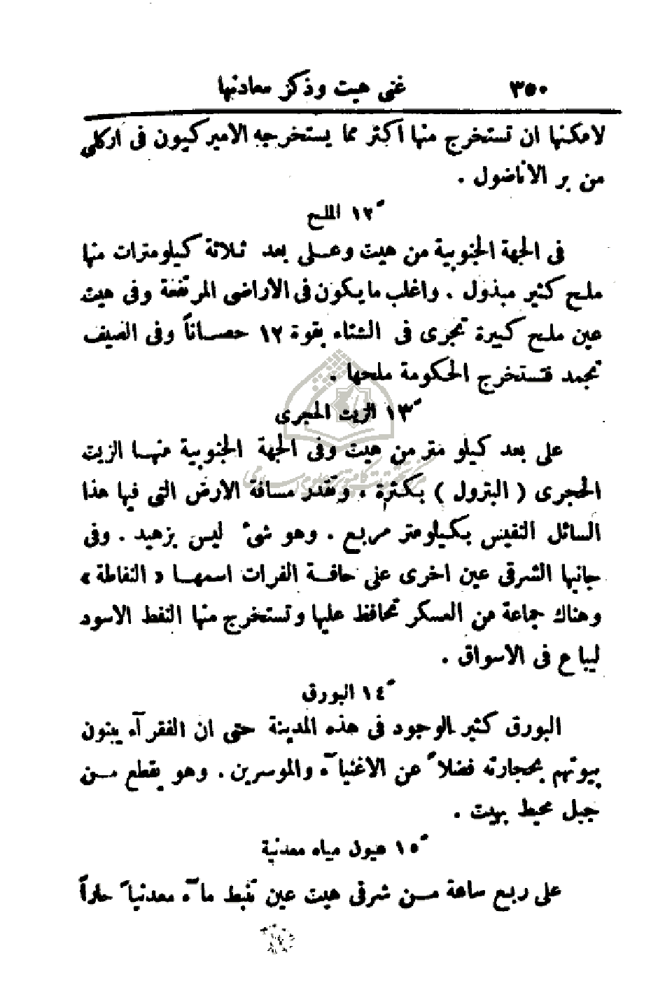 على ربع ساعة من شرقي هيت عين تنبط ماء معدنياً حاراً