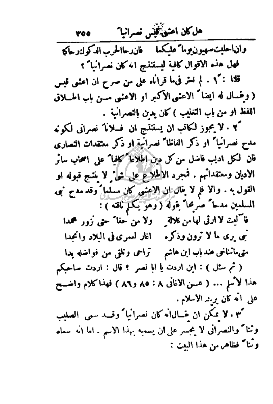 قلنا: 1 - لم نعثر في ما قرأناه على من صرح أن أعشى من باب إطلاق اللفظ أو من باب التغلب) كان يدين بالنصرانية.