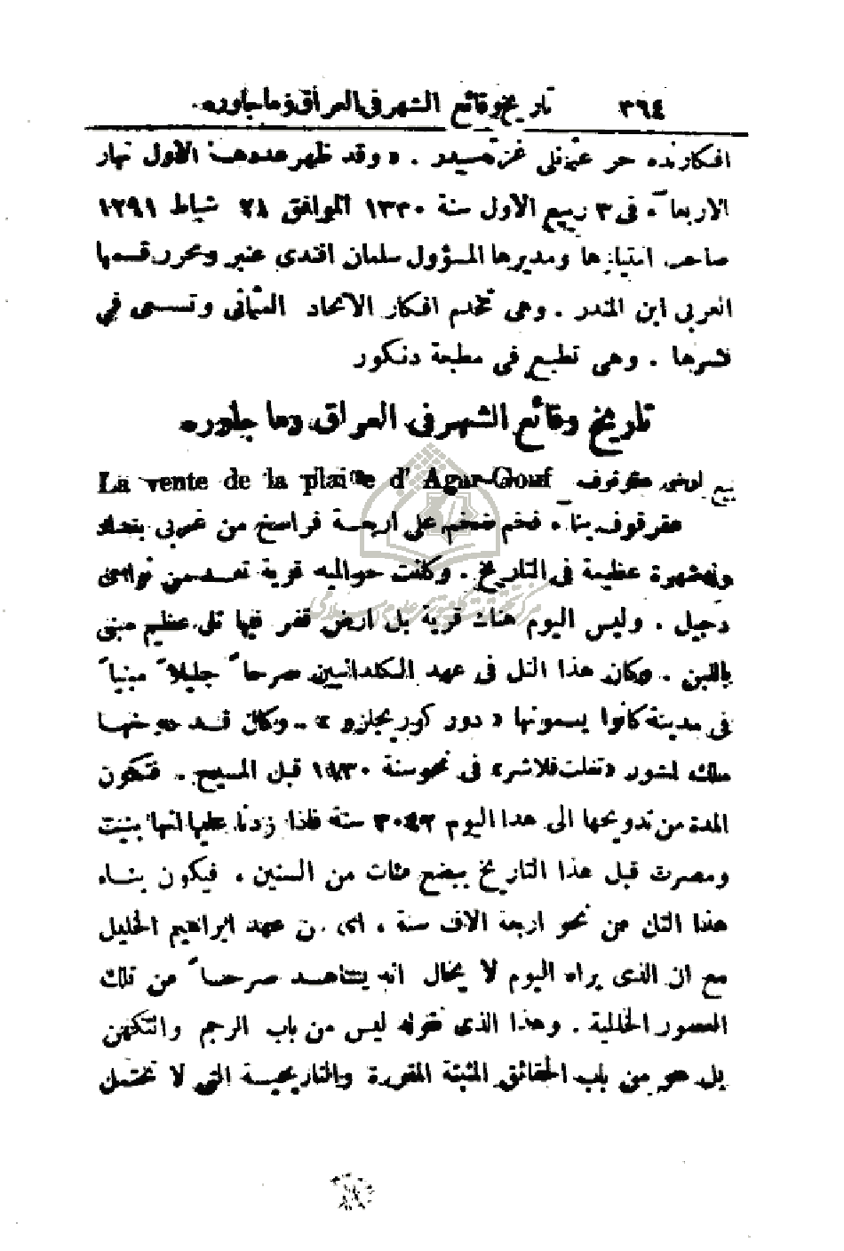 عقرقوف بناء فحم ضخم على أربعة فراسخ من غربي بغداد وله شهرة عظيمة في التاريخ. وكانت حواليه قرية تعد من نواحي دجيل. وليس اليوم هناك قرية بل أرض قفر فيها تل عظيم مبني باللبن. وكان هذا التل في عهد الكلدانيين صرحاً جليلاً مبنيا في مدينة كانوا يسمونها (دور كوريجلزو). وكان قد دوخها ملك أشور (تفلت فلاشر) في نحو سنة 1130 قبل المسيح. فتكون المدة من تدويحها إلى هذا اليوم 3042 سنة فإذا زدنا عليها إنها بنيت ومصرت قبل هذا التاريخ ببضع مئات من السنين، فيكون بناء هذا التل من نحو أربعة آلاف سنة، أي من عهد إبراهيم الخليل مع أن الذي يراه اليوم لا يحال انه شاهد صرحاً من تلك العصور الخالية. وهذا الذي نقوله ليس من باب الرجم والتكهن بل هو من باب الحقائق المثبتة المقررة والتاريخية التي لا تحتمل