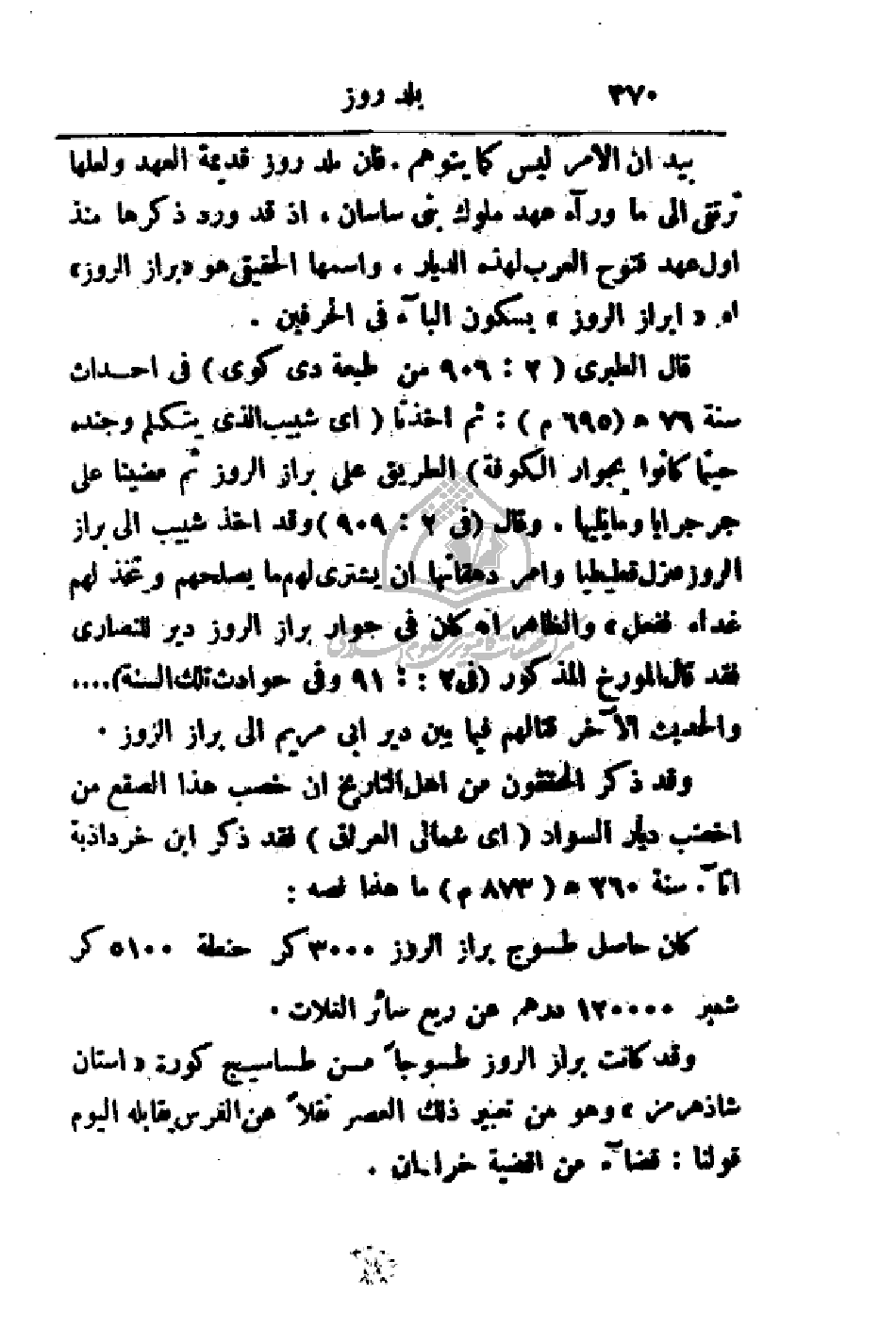 كان حاصل طسوج براز الروز 3000 كر حنطة 5100 كر شعير 120000 درهم عن ريع سائر الغلات.