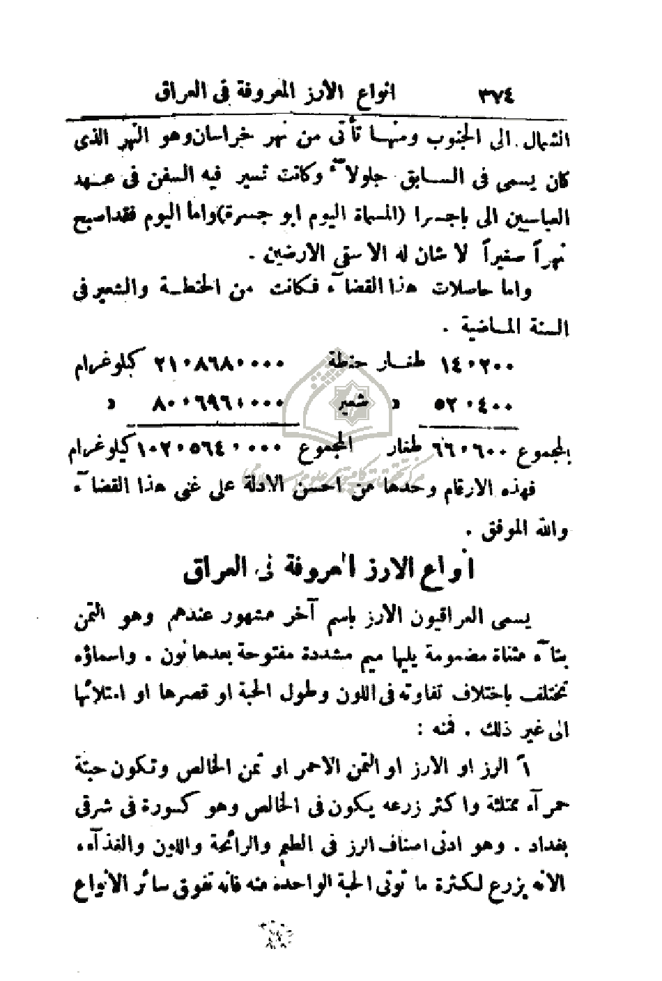80696000 - المجموع 66600 طغارالمجموع 102564000 كيلو غرامفهذه الأرقام وحدها من احسن الأدلة على غنى هذا القضاء والله الموفق.