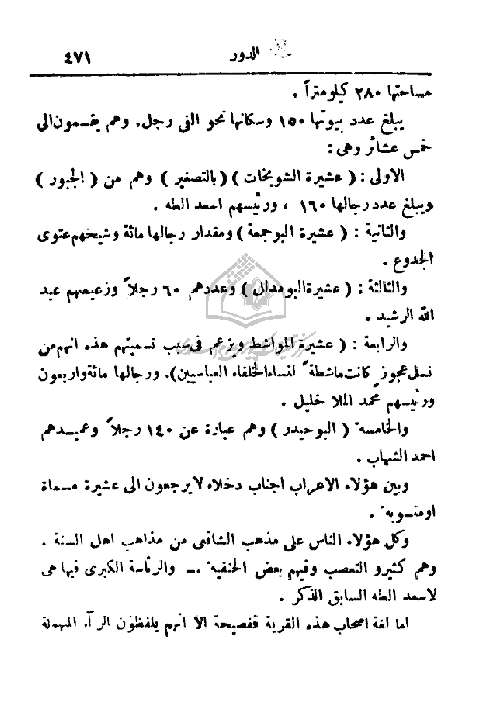 الأولى: (عشيرة الشويخات) (بالتصغير) وهم من (الجبور) ويبلغ عدد رجالها 160، ورئيسهم اسعد الطه.