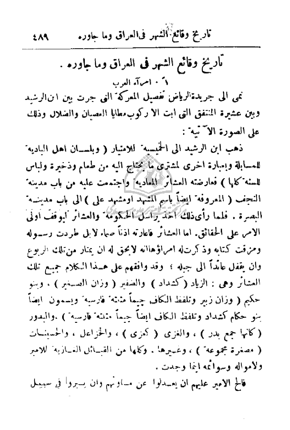 نمى إلى جريدة الرياض تفصيل المعركة التي جرت بين ابن الرشيد وبين عشيرة المنتفق التي آبت إلا ركوب مطايا العصيان والضلال وذلك على الصورة الآتية: