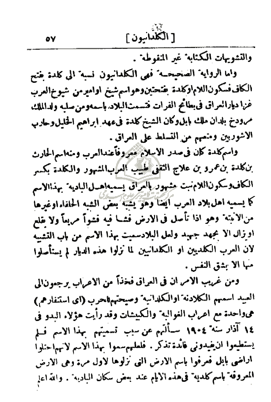 وأما الرواية الصحيحة فهي الكلدانيون نسبه إلى كلدة بفتح الكاف فسكون اللام أو كلدة