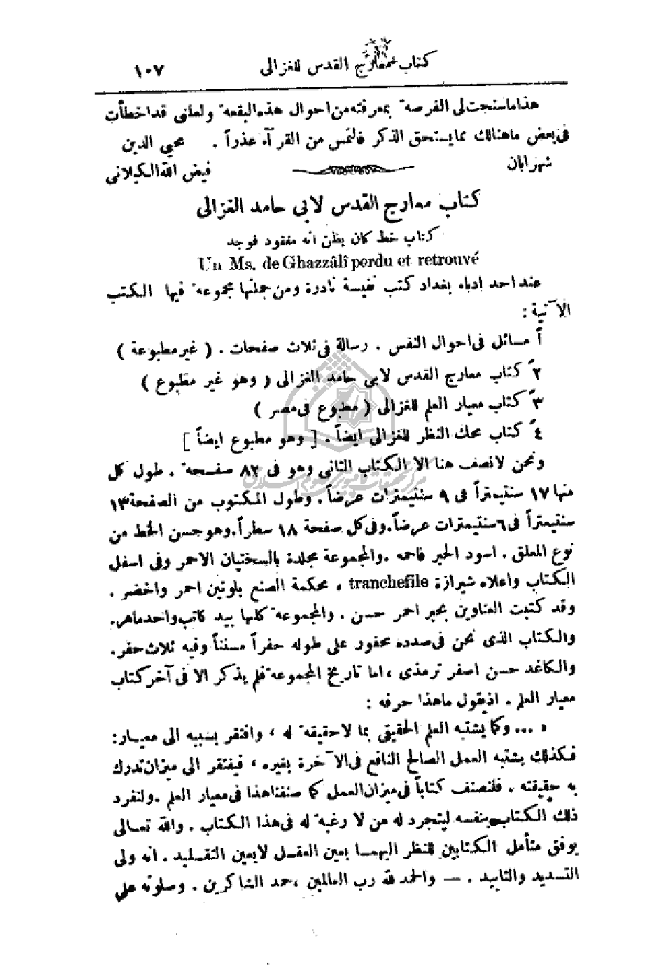 2 - كتاب معارج القدس لأبي حامد الغزالي (وهو غير مطبوع)