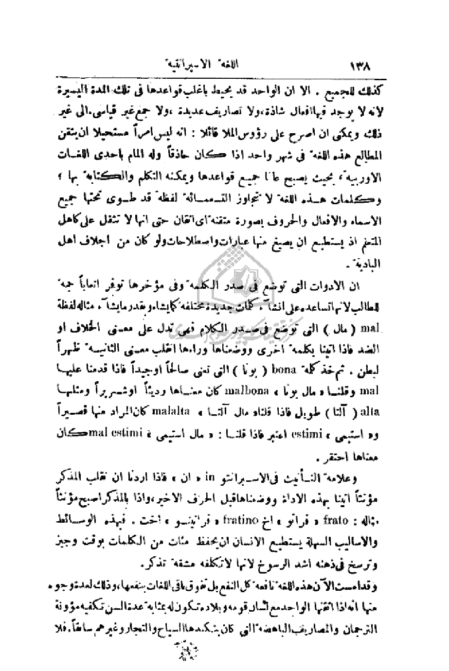 أنه ليس أمراً مستحيلا أن يتقن المطالع هذه اللغة في شهر واحد إذا كان حاذقاً وله إلمام بإحدى اللغات الأوربية، بحيث يصبح عالما جميع قواعدها ويمكنه التكلم والكتابة بها، وكلمات هذه اللغة لا تتجاوز التسعمائة لفظة قد طوى تحتها جميع الأسماء والأفعال والحروف بصورة متقنة أي إتقان حتى أنها لا تثقل على كاهل المتعلم إذ يستطيع أن يصيغ منها عبارات واصطلاحات ولو كان من أجلاف أهل البادية.