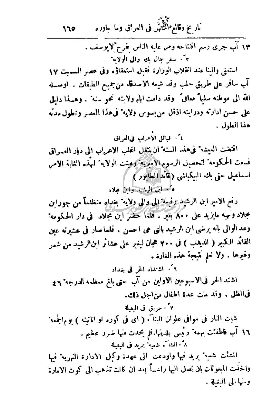 اقتضت العيشة في هذه السنة أن ينتقل اغلب الأعراب إلى ديار العراق فسعت الحكومة لتحصيل الرسوم الأميرية وعينت الولاية لهذه الغاية الآمر إسماعيل حقي بك البيكباشي (قائد الطابور)
