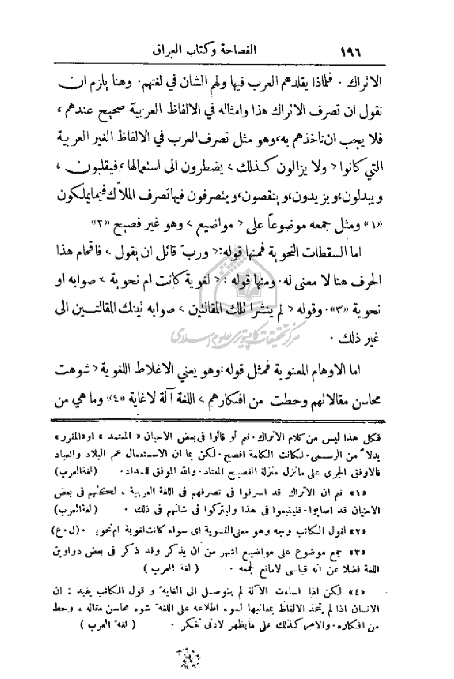 الأتراك. فلماذا يقلدهم العرب فيها ولهم الشان في لغتهم. وهنا يلزم أن نقول أن تصرف الأتراك هذا وأمثاله في الألفاظ العربية صحيح عندهم، فلا يجب أن نأخذهم به، وهو مثل تصرف العرب في الألفاظ الغير العربية التي كانوا (ولا يزالون كذلك) يضطرون إلى استعمالها، فيقلبون، ويبدلون، ويزيدون، وينقصون، ويتصرفون فيها تصرف الملاّك فيما يملكون ومثل جمعه موضوعاً على (مواضيع) وهو غير فصيح