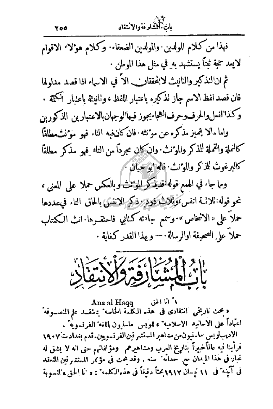 (بحث تاريخي انتقادي في هذه الكلمة الخاصة بمعتقد علم المتصوفة اعتماداً على الأسانيد الإسلامية) للويس ماسنيون باللغة الفرانسوية.