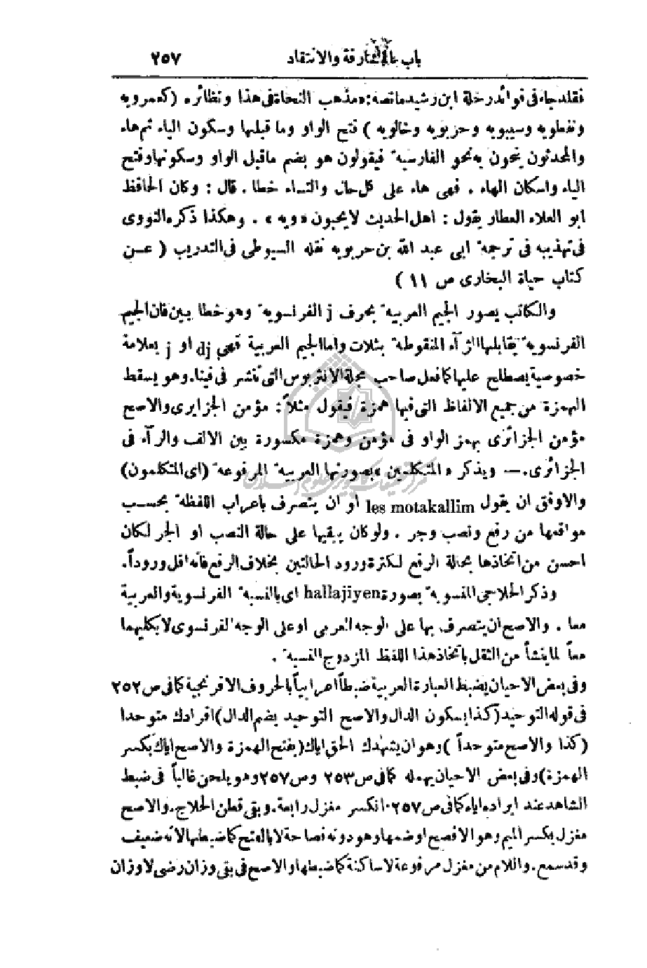 وذكر الحلاجي المنسوبة بصورة أي بالنسبة الفرنسوية والعربية معا. والأصح أن يتصرف بها على الوجه العربي أو على الوجه الفرنسوي لا بكليهما معاً لما ينشأ من الثقل باتخاذ هذا اللفظ المزدوج النسبة.