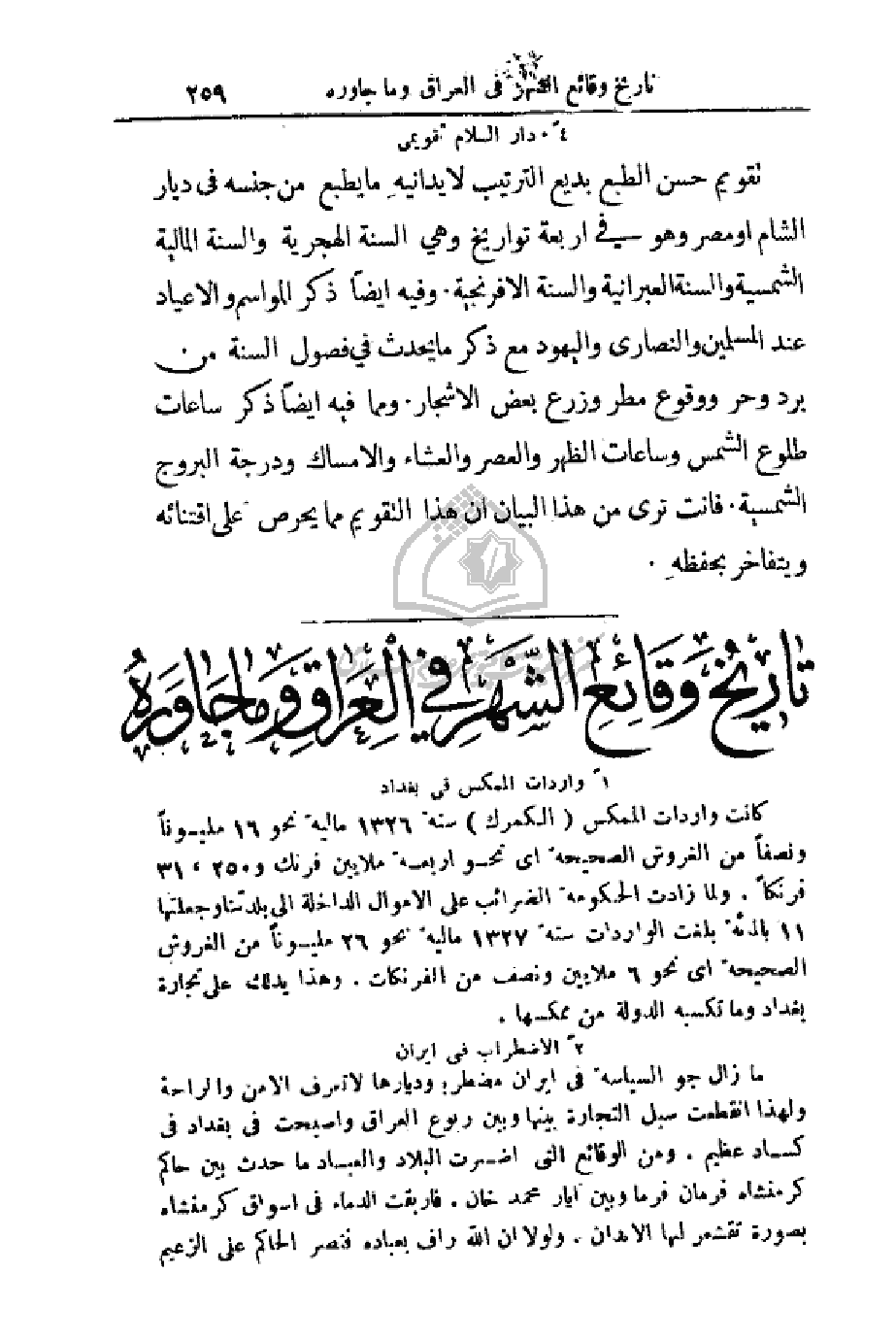 تاريخ وقائع الشهر في العراق وما جاوره